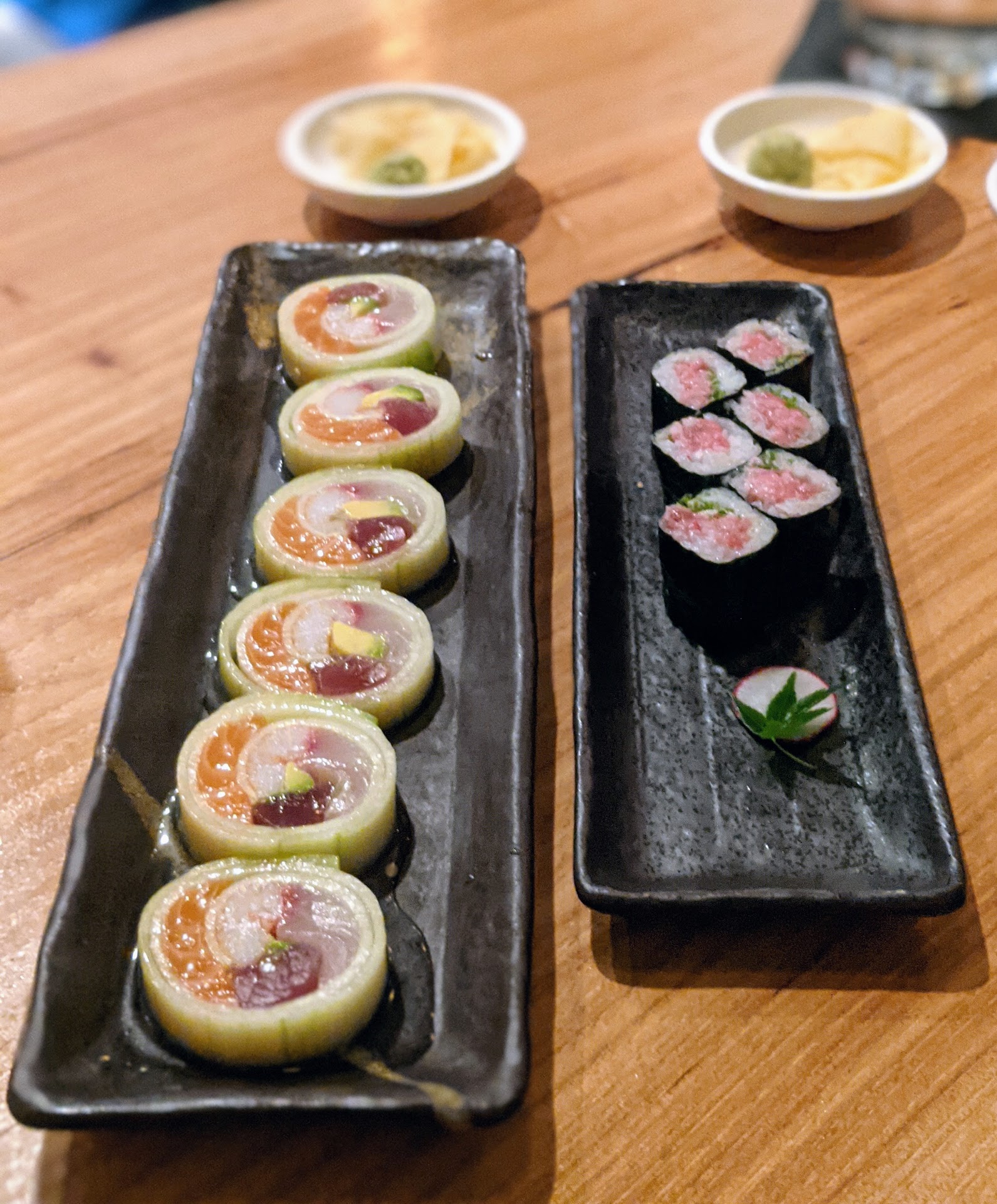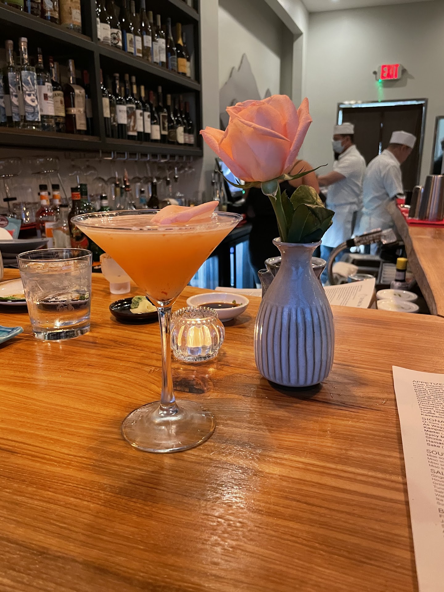 Read moreDecided to head to Alpharetta for a late Friday night dinner. Sushi sounded good and Lily got great reviews, so off we went! No reservations, which I would recommend, but there were two seats at the bar, yay! We were quickly given a couple really beautiful and classy table settings. The cocktails looked so good and right up our alley, modern and not too sweet. I got the White Cloud..egg whites in drinks always intrigue me. My BF got the Sake Mojito. The bartender was so nice and fun to watch. Our drinks were outstanding! We ordered a couple of apps and a couple of rolls; the baby octopus, tuna tartare, the skinny roll, and the fatty tuna roll (recommended by the bartender). The tuna tartare was a showstopper! So many different flavors on the plate made this simple dish a disco for the senses, visually as well: the thin sliced seaweed on top, the quail egg, a little spicy sauce with sesame oil on the side, and of course the tuna, genius. It was a little difficult to share with chopsticks and we ended asking for a fork. The baby octopus were good, too. The skinny roll was perfect, flavorful and I loved the ponzu sauce with it. The fatty tuna roll was not what I expected. I assumed it would be simple, whole cut fish, but I think it was slightly ground tuna in a light oil or mayo sauce. It was good, but not my usual taste. Overall, a really wonderful experience! The only reason I'm not giving 4 stars is, and I hate that I'm doing this, is because of the prices. I'm not one to be stingy and I'm not looking for a giant plate of food, but it was a little more than I like to pay for what we got. We decided against wine because the markup on the wines by the glass were a little crazy. $25/glass for the Prisoner. Dude. Admittedly, it's probably not going to keep us from going back and I still highly...