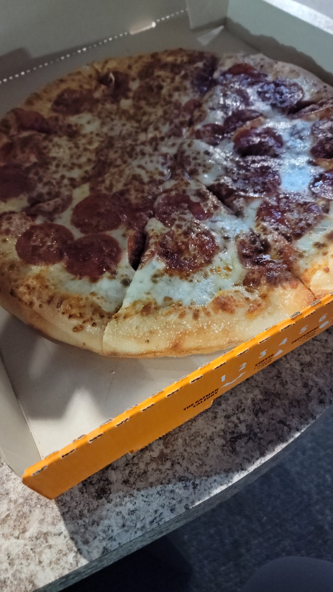 Read moreWas just there today. Pre-ordered online. When I arrived I noticed a man leave and return because he was given the wrong order. I noticed that my order was not in the self service area. I asked the cashier and she informed me that my order was coming out next. While I waited I watched as another customer walked in and placed his order and he received his order before me although I had preordered. So now I’m getting bothered. So I asked the cashier again and she says it’s in the oven. Finally she gets my pizza and says that the crazy bread is not ready. So I would have to wait even longer as the cook just put it in the oven. So the guy who came in after without a preorder received his crazy bread before me!! At this point I’m pissed as I had my family waiting. So I left without the crazy bread and was told she was only a cashier and the manager would have to take the crazy bread off. No one apologized nor seemed to care that my order was not ready 30 minutes passed the promised time. Bad...
