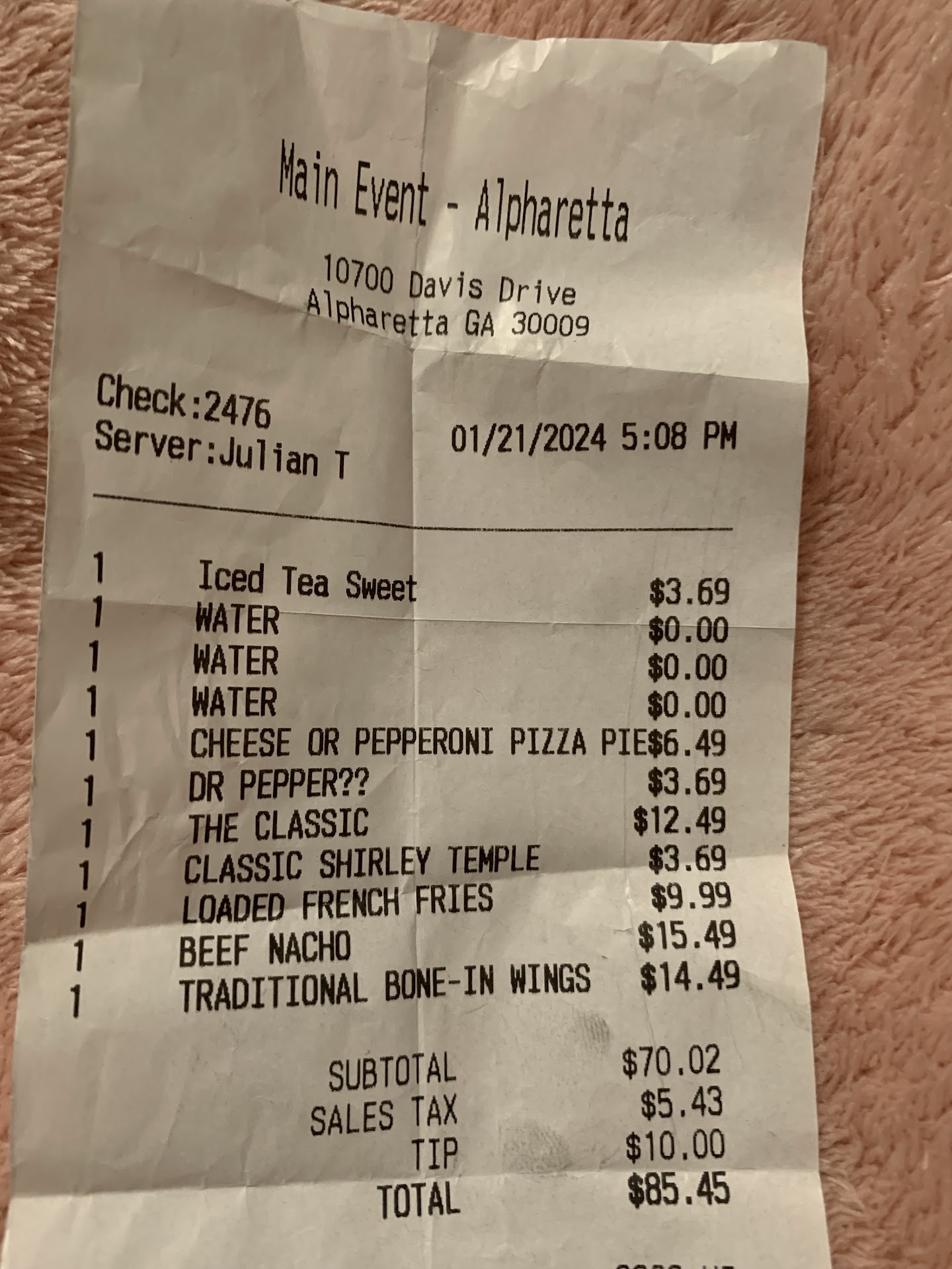 Thank you once again to Miss Jocelyn and the entire Main Event Alpharetta team for making our time there...