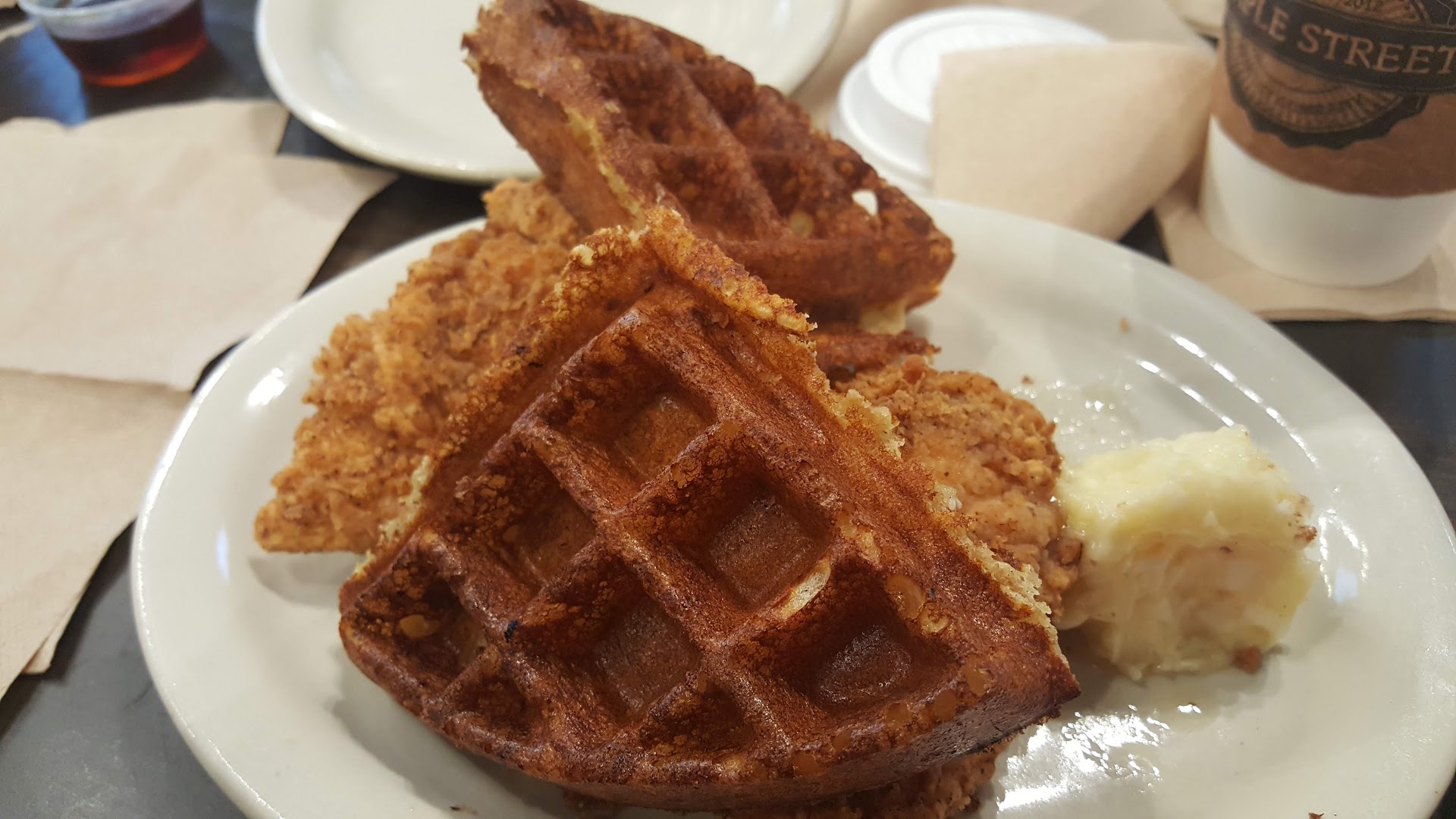This was my second visit to Maple Street Biscuit Company. Because they were so "gourmet delicious" on my first visit, I decided to take my family to try the BAM YO YO waffles and chicken dish. Everything was different and no longer gourmet. The food was subpar. They changed the waffles to a airy, less filling product, and their sweet icing glazed pecan cinnamon biscuit was horrible because they took out the nuts. Now the sweet treat is a crispy cinnamon dough ball of mush. It's a trendy place and has so much potential. However, since they feel that watering down the waffles and removing the pecans to save money is proper, then they deserve to lose the business. The strongest blend of drip coffee was weak, and the waffles were cooked a bit too dark. "Golden brown" is the appetizing color for waffles. To be honest, Maple Street Biscuit Company really dropped to a dark place in my opinion. They could simply change the place to Waffle House and do better. I will not return until I speak with an owner of the establishmenr to find out whether they are going to put things back to how it was when I first tried their food. I will go back on the date he or/and she tells me things should be returned to its original gourmet taste. Otherwise, I will not be going back to eat there because it is just not worth it now. SEE THE ATTACHED PICTURE OF THE FOOD BEING SERVED ON DECEMBER 28TH, 2018 AT 11:30am TO 1:30 pm TO BETTER UNDERSTAND AND APPRECIATE WHY I AM TELLING YOU THAT I WILL NOT BE GOING BACK. SO SAD AND...