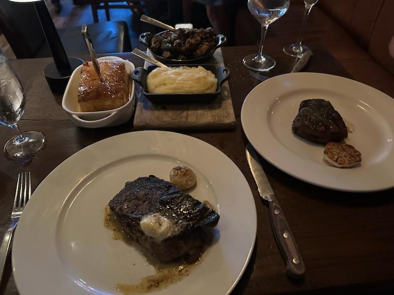 It was my first time visiting, we were a group of four who were all equally impressed. We ordered a variety of dishes, from steak to fish and salads, and every single item exceeded our expectations. The food was exceptional, with aged steaks and delicious chef-style vegetable sides. The cocktails and wine selection were also top-notch. The only suggestion I have is that the bar could benefit from a smoker for the Old Fashioned cocktails, adding an extra layer of flavor to an already impressive drink menu.