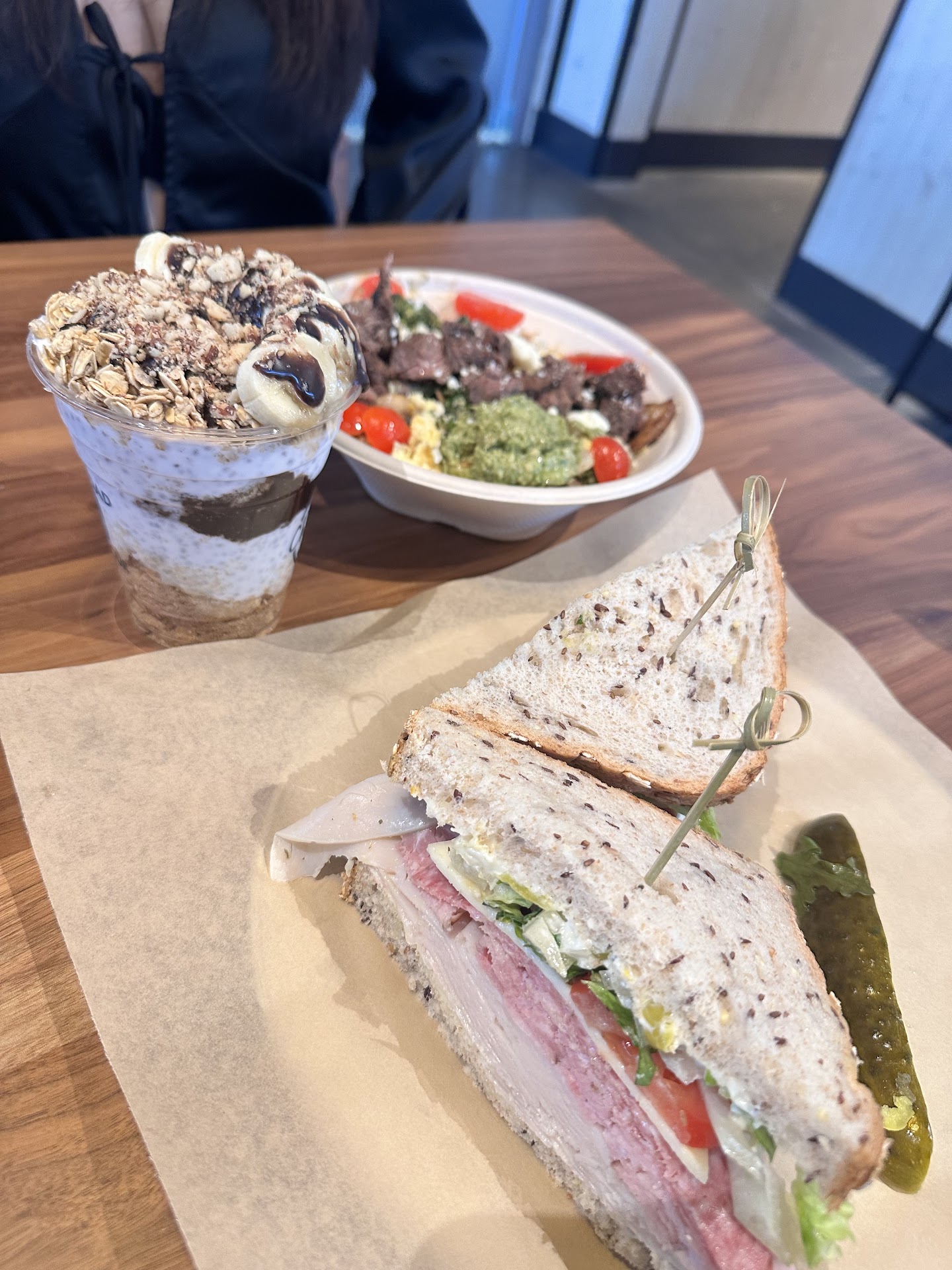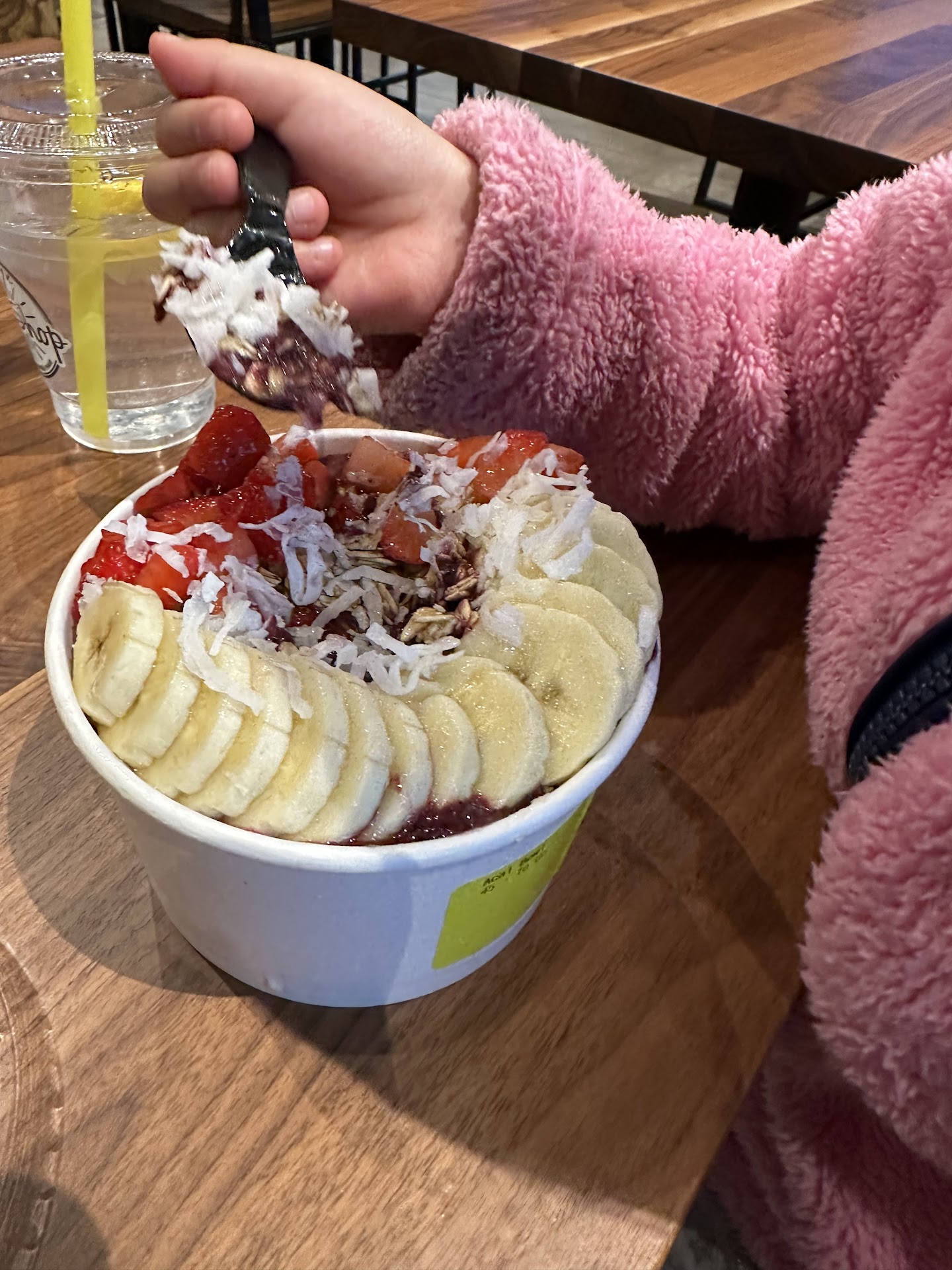 The restaurant wasn’t busy—there were only three small parties of 2 to 5 people. However, 10 minutes after placing my order, I noticed the açai bowl was just being prepped in the back. The same team member who had been standing behind the counter earlier, not assisting anyone, was now preparing my bowl. I’m not sure what took so long as it wasn’t busy and there were team members standing around.