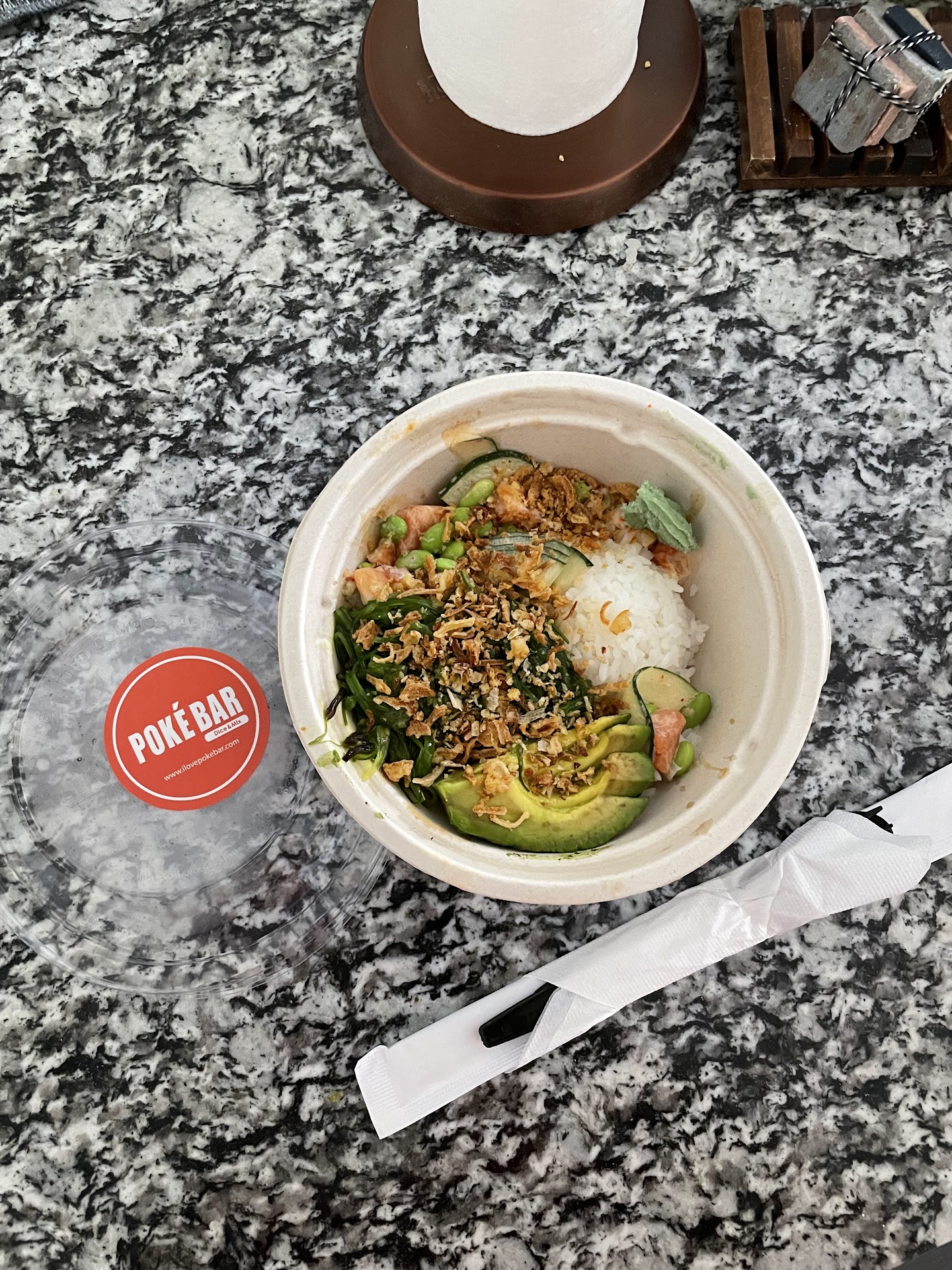 When I got home I noticed how skimpy the ingredients were, there was a ton one of the proteins but not that much of the other, I could count the edamame seeds there were so few, there was barely a rice base, and the sauce only coated half of the skimpy ingredients. The to go box was half full, unlike The Poke Company which packs a recyclable to go bowl vs a ‘Panda Express’ box, I wondered if that effects the quality.
