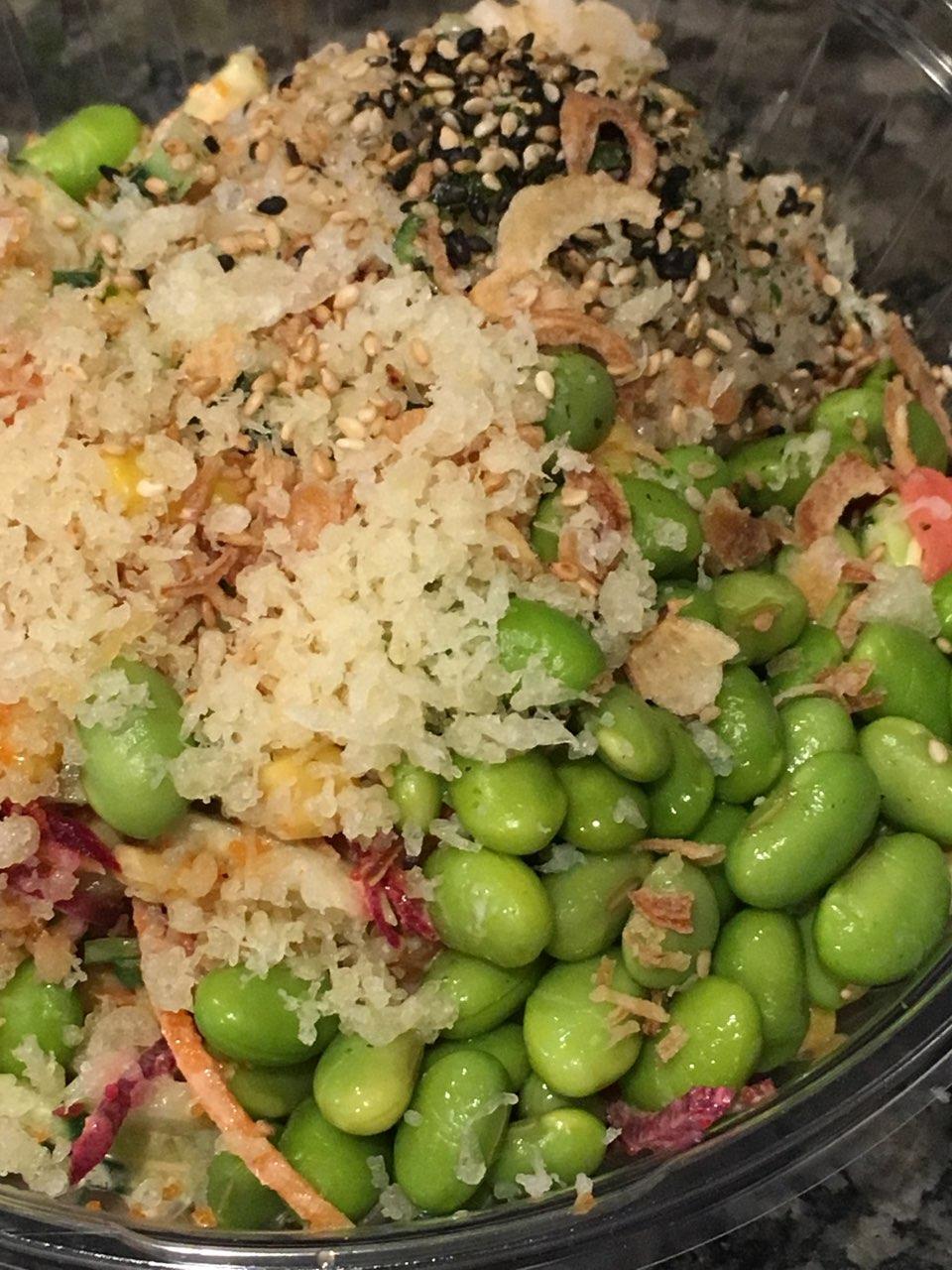 Read moreVery pleasant place to have poké. The food ingredients always look fresh and taste delicious. Their potion is enough for me to split 2 meals and they have many protein options including tuna, salmon, shrimp, etc. They especially have green noodles for base which I haven't seen anywhere else yet. And ofcourse, they have toppings! Dried seaweed, tempura flake, fried onions, sesame seeds! Plus, plus, and plus. For the food, I usually get the customize bowl with salmon base, lettuce, onion, and white rice, with some topping, edamame. I'm not a fan of avocado but my bf is and he loves going here for the Dynamite Bowl. They also have a Pokerito which looks pretty appealing. Will have to revisit to try that. Their milktea is honestly really good for a non-milktea store. I always have the Jasmine milktea and it taste fresh and milky everytime. I have often come here for just the milktea! On top of the food, the owner is super nice. She remembers my order and always greets us nicely. Feel very...
