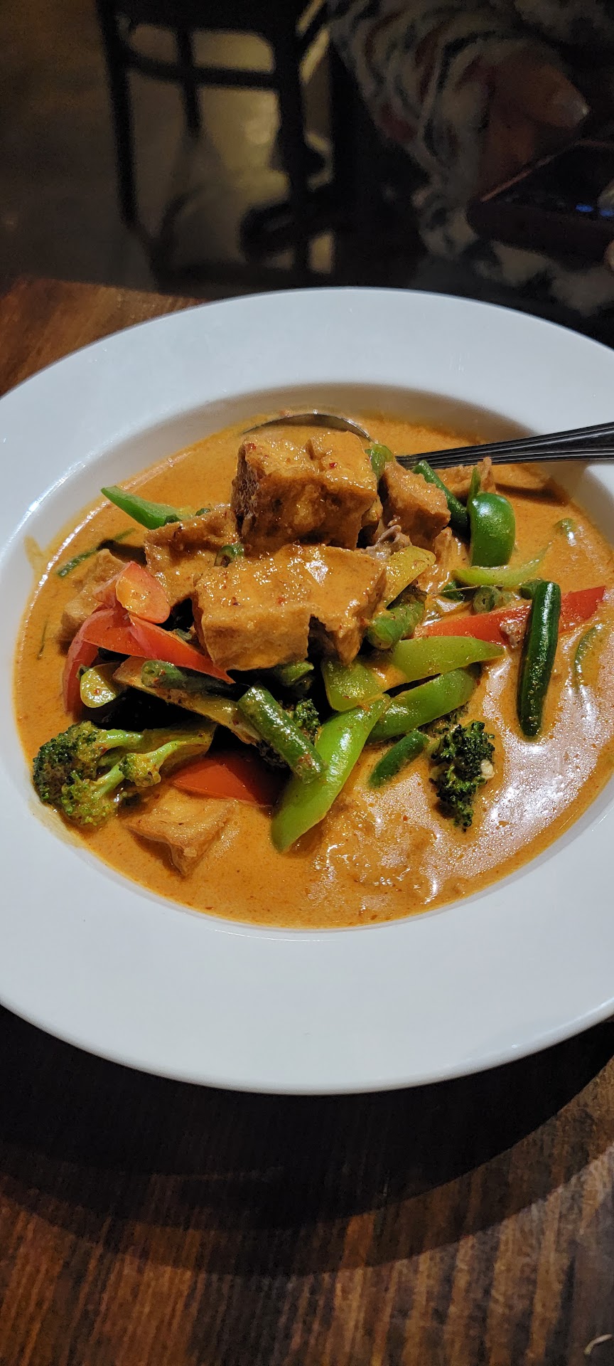 Absolutely fantastic(!) Thai food, some of the very best I’ve had anywhere, and that covers a LOT of ground. This is genuine Thai food, cooked by a Thai National who attended cooking school in Thailand. Thoom herself is pleasant and gracious, and everything is super-delicious. As I said, everything is good, by the Tom Kha Gai (coconut soup with chicken) is outstanding. Rich, creamy and piquant, it’s the best of all the dozens (and dozens) versions I’ve tried. I call attention to the Tom Kha Gai, but everything I’ve had here has been exceptional. (One note: Spicing tends to run towards the hot/Thai end of things. If you normally order “hot” at typical American Thai restaurants, maybe go for “Medium” here, ditto for medium to mild.) You’ve GOT to try this place; if you have any affection for great Thai food, you’ll become a regular like me! (Tell Thoom that Dave...