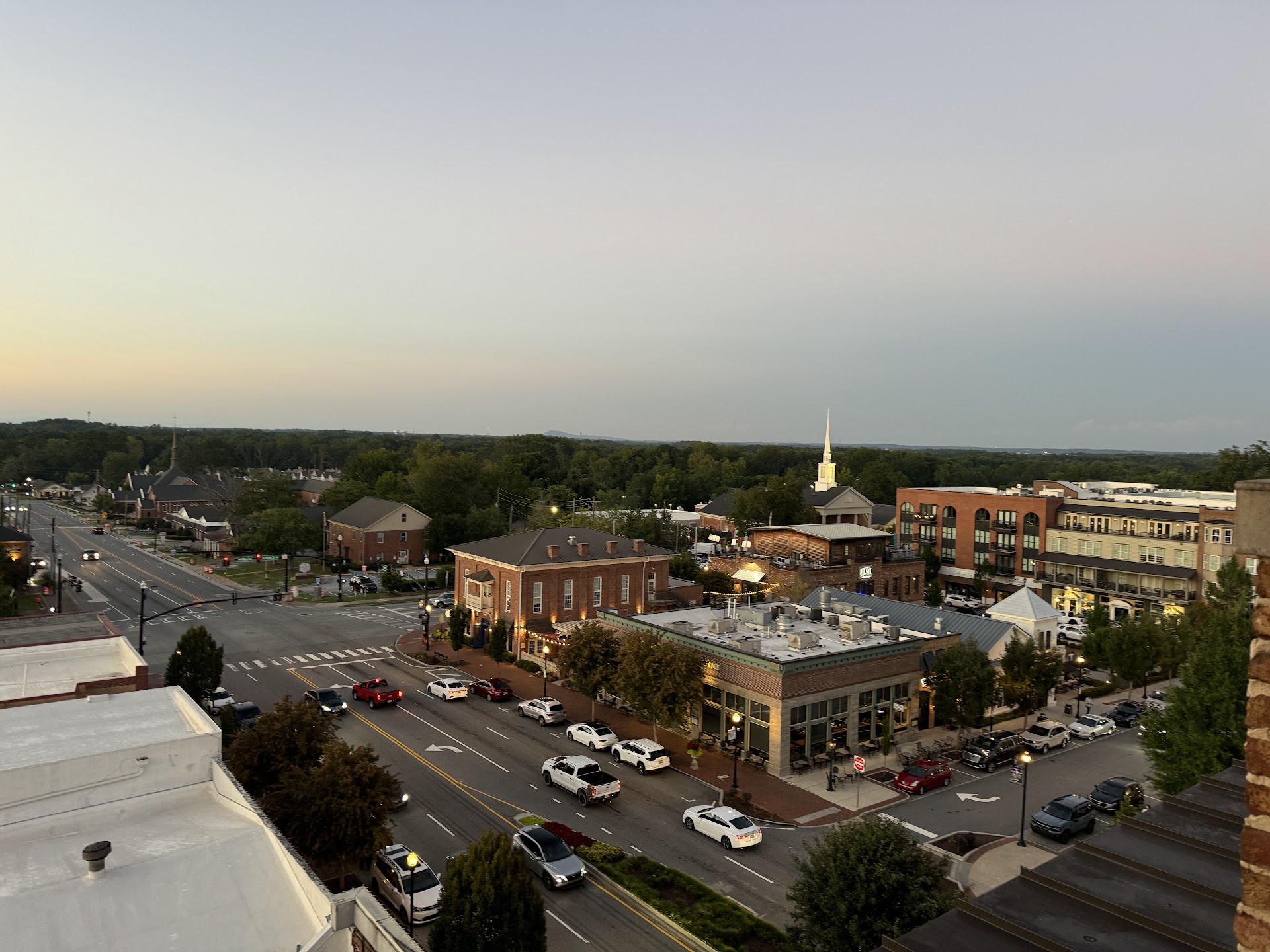 Went on a Wednesday night with 3 friends. Parking is limited so I had to park about 5 minutes away, but it wasn’t a bad walk. The view from the restaurant overlooks downtown Alpharetta. It’s October so it was a little cool as the sunset, but got to sit on the couches near the fireplace. Overall the atmosphere was beautiful.