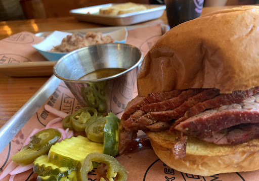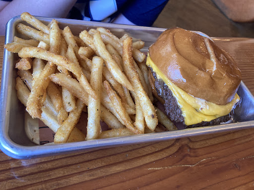 As for BBQ that's why I was there. We ordered the brisket burger, tri-tip and pulled pork burgers. Each burger, the BBQed meats, were perfection. No need to include sauce, the meat is already tender with great seasoning. They do include a little bit of sauce but that's all that's needed. If there is a need for more BBQ sauce, ranch for fries, etc. there is a condiment and silverware station on the far wall between the bar and kitchen. We wanted to try the ribs but that'll be another trip to the Outpost later on.
