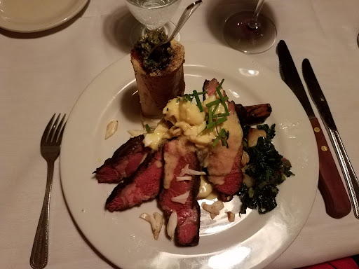 Now let me elaborate: 1) the interior of a restaurant is outdated with seriously outdated lighting. Overall, it is reminiscent of an old diner in the middle of nowhere. Cheap carpet floor makes the impression of a motel. 2) food (and in my case 'rack of lamb' priced at $44) came out totally burned (I ordered it well done). When I sent it back to the kitchen - burned food came back even worse.