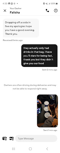 I ordered a quart of ice cream and two half pound burgers and fries. No sooner had she rang up my order and someone set the quart of ice cream in front of me. I asked her how much it was going to melt before I got home: "Deer in the headlights stare" I took it outside to keep it from melting.