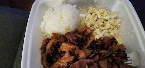 The kalua pork was very fatty, barely any meat, it was also bland. The chicken was a bit dry but had good flavor. We ordered one combo with two mains and 3 sides, we asked for one of each and the container was filled with 1/3 salad then a little bit of Mac and rice, the Mac was bland too, needed more apple cider and less sugar, tasted like pure mayo. But seriously, all the meat with so little rice? I mean come on… that’s not very Hawaiian is it.