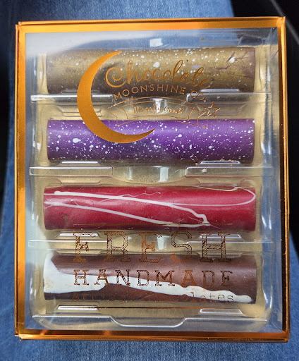Read moreAmazing truffles. BELGIAN chocolate.. so good, creamy and smooth.. Alcohol infused fudge.. over 45 different flavors of truffles and 50 diffrernt fudges. Truffles are only 6 grams off sugar and 100 calories per bar. Gluten free and delish...absolute favorite is the wait for it... chocolate covered gummy bears.....