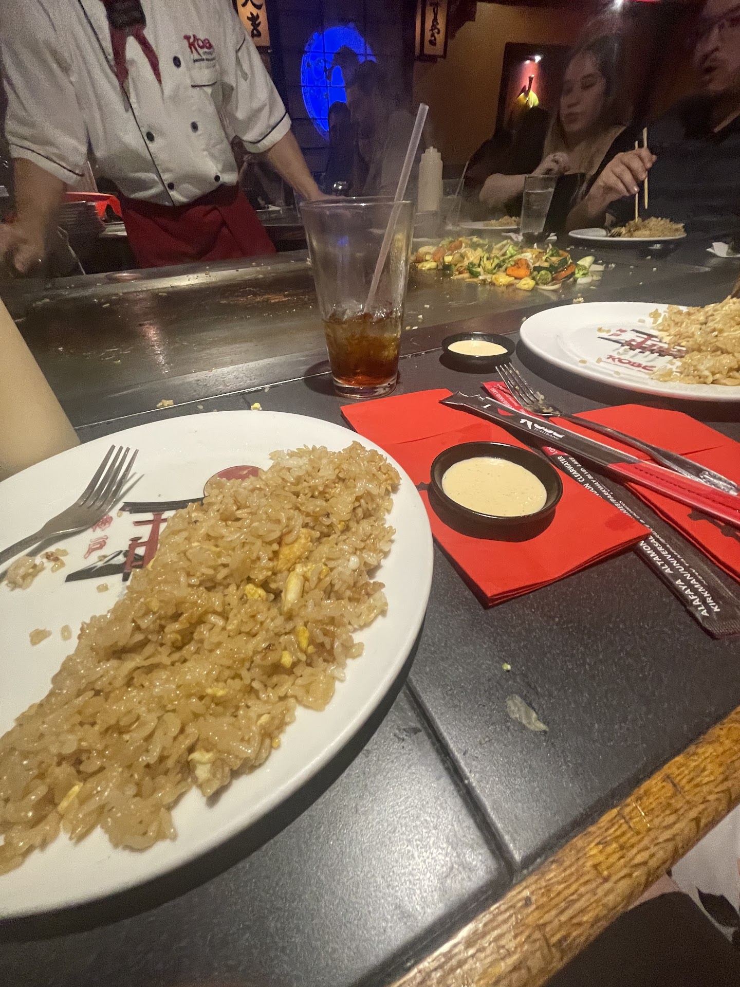 I revisited this Kobe today for my 19th birthday with my family and partner. To secure our seats at the very busy location on a Sunday night, we reserved our spots 3 hours in advance for 7 the same night. Upon our arrival at 6:50, our experience started great and in very similar fashion to my previous visits. We were quickly called up by the hostess to have our reservation verified and were seated within minutes. Upon being seated, we were placed at a hibachi table with some other parties directly across from a separate hibachi table already occupied by other guests. It was visible upon our arrival that this separate grill directly opposite of us had new customers as they were just receiving their drinks (~5 min after arrival). Keep this in mind.