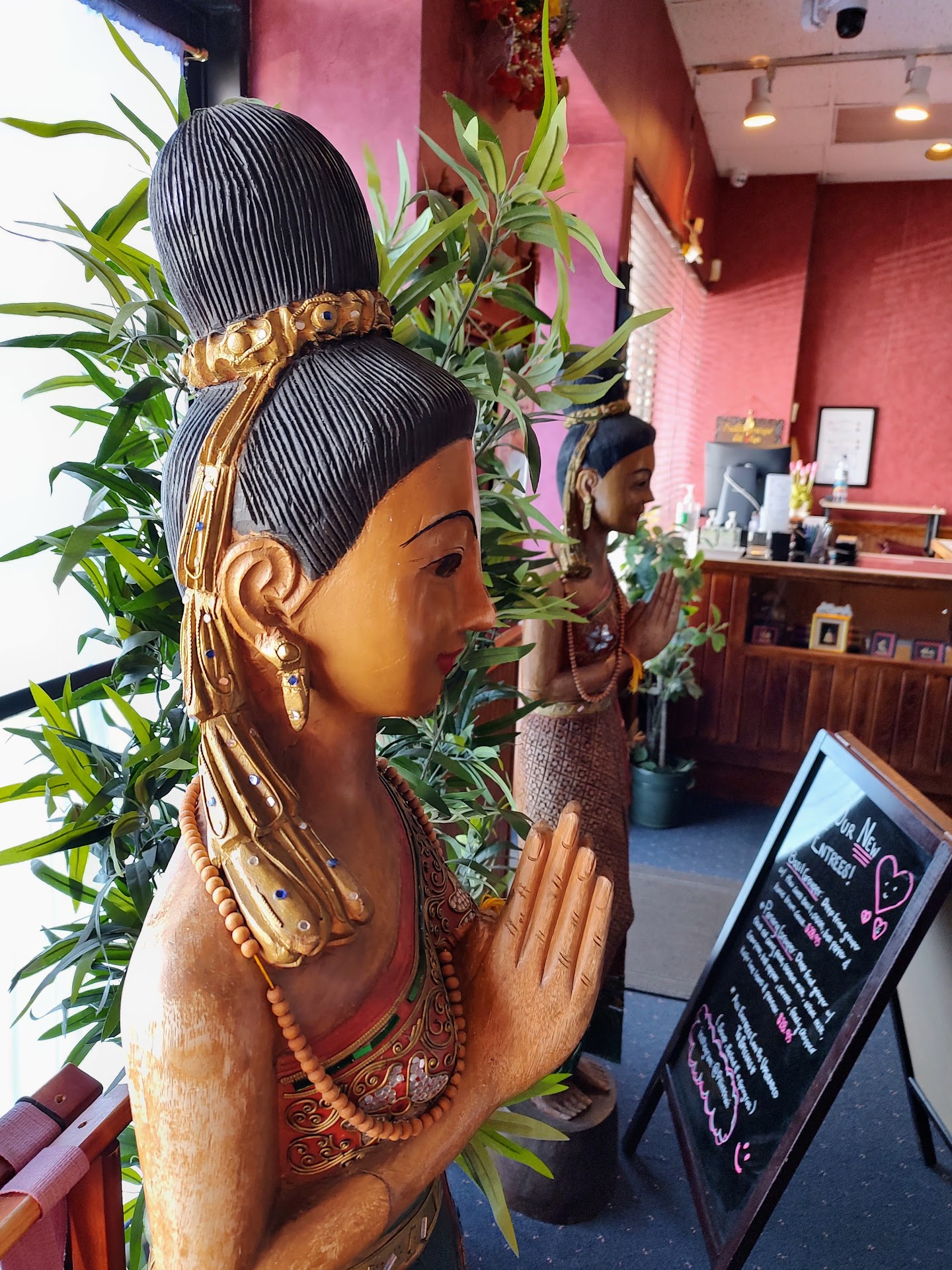 Read moreThe restaurant is located in a nondescript strip mall and the storefront is unassuming. But the only thing better than the delicious food is the helpful and friendly staff. We went for lunch on a Tuesday. I had the Pad Thai lunch special and asked for "Thai Hot" spice level. It came with a spring roll, chicken rice soup and a salad with a ginger dressing. It was perfect. The spring roll was super crispy. The salad dressing was the perfect balance of sweet, vinegar and ginger flavors. We also got an appetizer of chicken wings. Super delicious and crispy, piping hot too 🔥. I chose veggies and tofu to go with my Pad Thai. The noodles were cooked perfectly and it came with scallions, onions, carrots, broccoli, and zucchini. I like spicy foods and the "Thai Hot" was perfect for me. Plenty of heat without overwhelming the flavors in the rest of the entree. My wife had the green curry with chicken pork and beef. She thoroughly enjoyed it. I also got a Tom Yam soup that was so delicious, I ordered one to take home. I also tried a Chang beer. It was crisp but not light. Nothing I'd drink on game day, but worth trying. Our waitresses were friendly and helpful, and made great suggestions. So far our favorite Thai spot in...