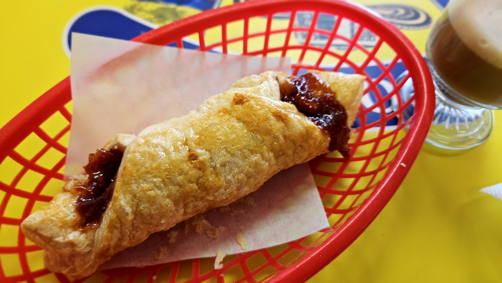 They make them on premises, they say. The flavor and texture are beyond good. Excellent. Flaky tender pastry, the perfect guava filling, and a nice amount of light, sweet, cream cheese. The dessert I'm referring to, of course, is the pastelito de guayaba con queso. I challenge you to find a better one...