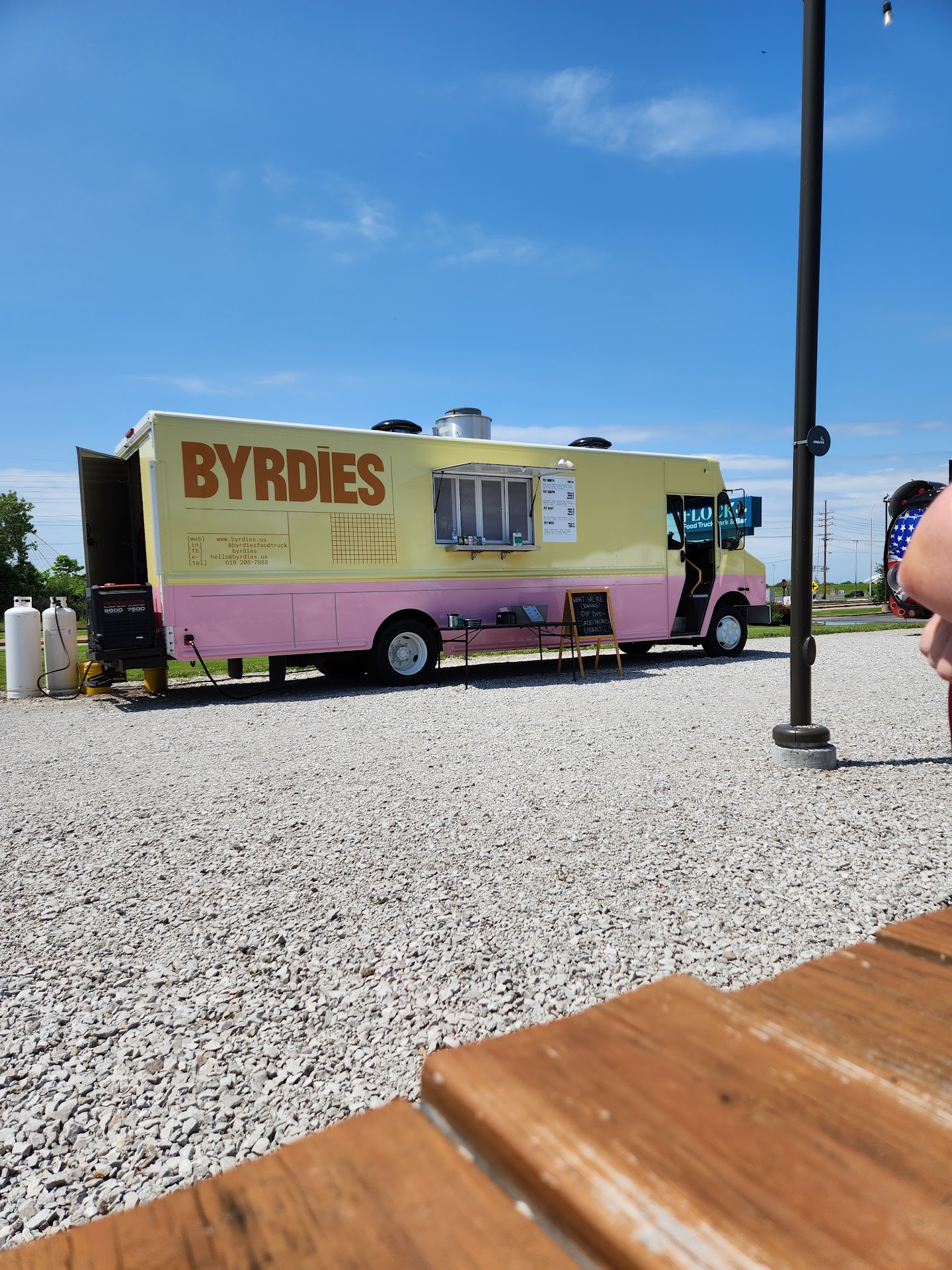 Read moreOur first time here and only Byrdies was open. Really nice covered area and then picnic tables with umbrellas. Challenging for someone with difficulty walking as it is all gravel and 4 steps down from the parking lot. On to the food. We ordered a wrap and planned to share it. Unfortunately, no grilled chicken was available for the wrap so had to do fried. The wrap had fresh ingredients and tasted pretty good, but it wasn't cut in half. That is a BASIC practice. We decided to try fries with white cheese. No salt. Again, it is basic practice to season anything coming out if a fryer. There wasn't even table salt available. Lots if great choices from the bar. I was driving so ordered tea but there was no sweetner. Not sure when/if we will...