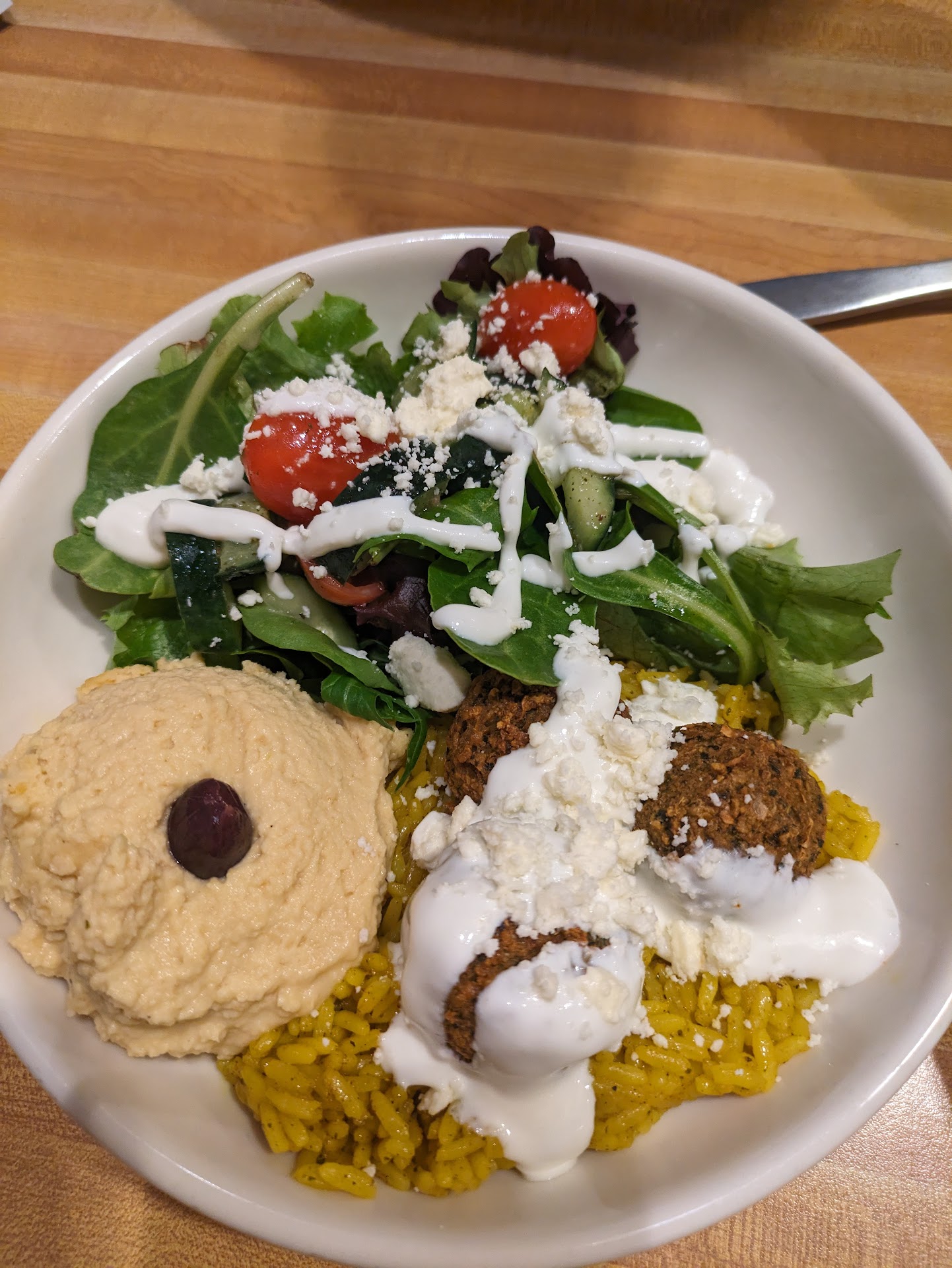 Read moreIf I could give 0 stars, I WOULD!!! On Friday, 9/30/2022 at about 5:30pm I went to Olga’s (my first time ever) with my husband (who’s from Alton), my best friend, and my goddaughter. The waiter kept coming to the table every 5 minutes. Our drinks were watered down. Sign number 1. Within 6 minutes they brought my bff and goddaughter their salads; my husband and I were still waiting. 15 minutes passes by when the water said they are now fixing our orders. Ten minutes later our food comes. I ordered an Olga bowel. When the waiter sits my bowl down, I see a long blonde hair hanging from inside the bowl off the side. I tell the waiter immediately before he hands my husband his order (which did not have the fries like it was suppose to) and tell him there’s a hair in my bowel. He acts as if he doesn’t see it and snatches the bowl from asking where. I grab the bowl and say let it go so I can show you. He holds the bowl and begins pulling it from me. My bff sees the hair and says there it is. So he snatches the bowl from me and before walking away tells my husband there’s a 4 minute wait on fries yet my bff and goddaughter have fries (that were cold and half cooked). He comes back to the table 5 minutes later with my husband’s fries, I ask for the manager and he tells me she’s making the bowl and will bring it to me like hen he walks away. After that we left. They didn’t touch anything, we left what was brought to the table there and left. We will not return there...