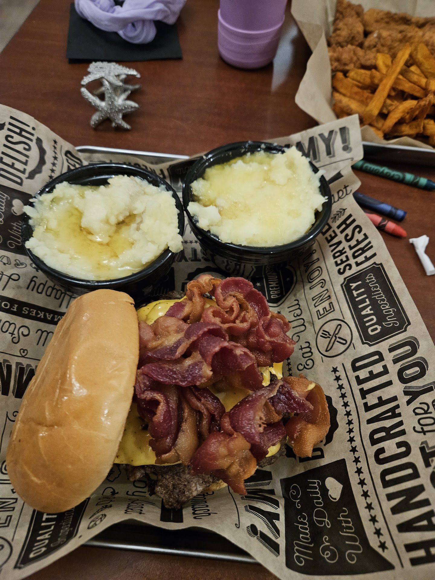 The reason it's two stars and not one is because the bacon, mashed potatoes and chicken fingers (non gluten-free) were good