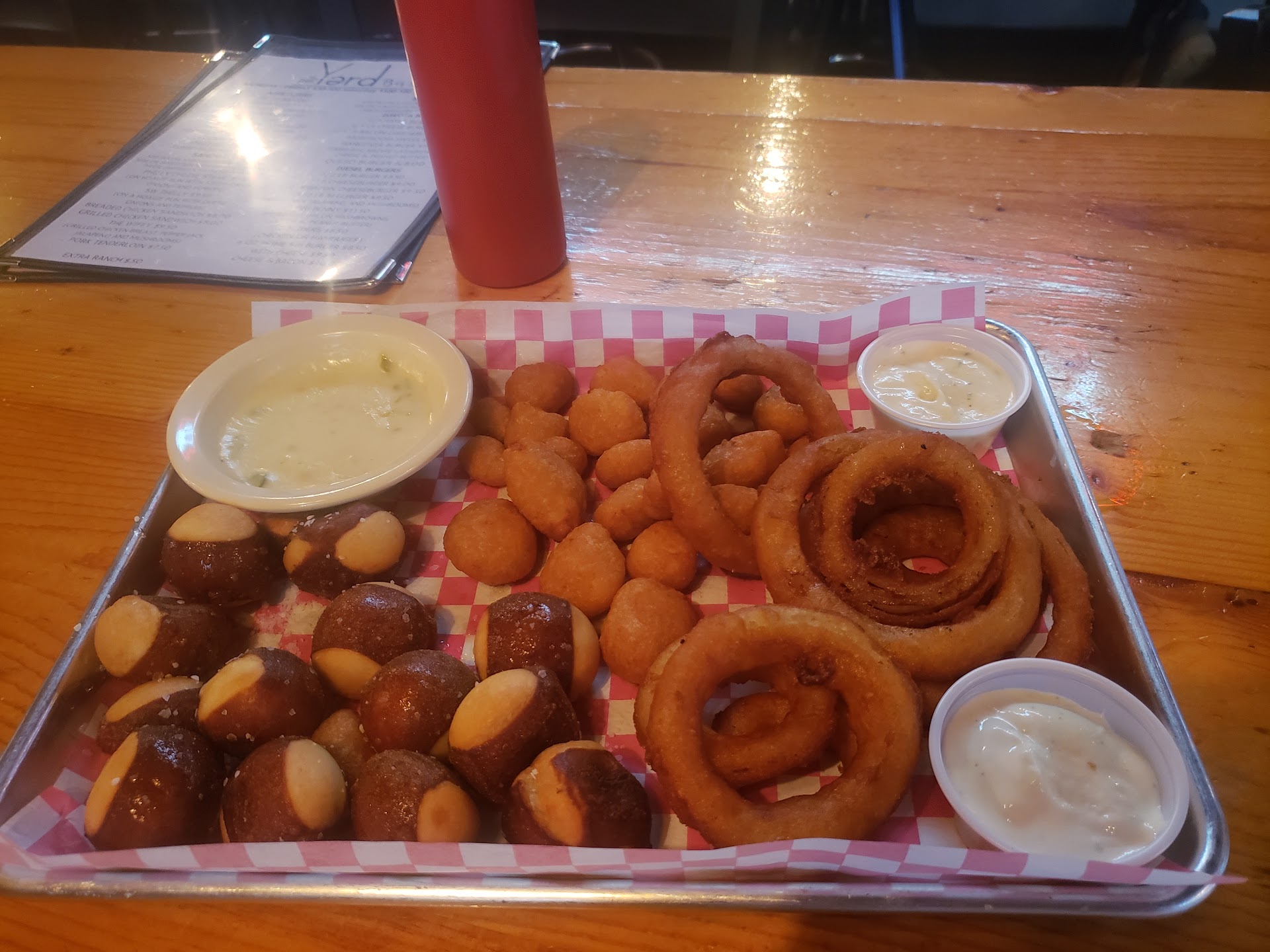 Great place to meet up with friends for some cocktails! The new owners, Amanda & Troy have put in a lot of work into updating the place it looks amazing. ASK them how they came up with the name, pretty cool! They are very friendly, down to earth, easy to talk to & they make you feel welcomed. Love the small town hospitality!!! OH, and the BOMB POP drinks are AMAZING! Looking forward to heading back for a date night as I hear their food ROCKS too, and need to try the YARD! Quite the unique selling proposition, you should do a TV commercial...