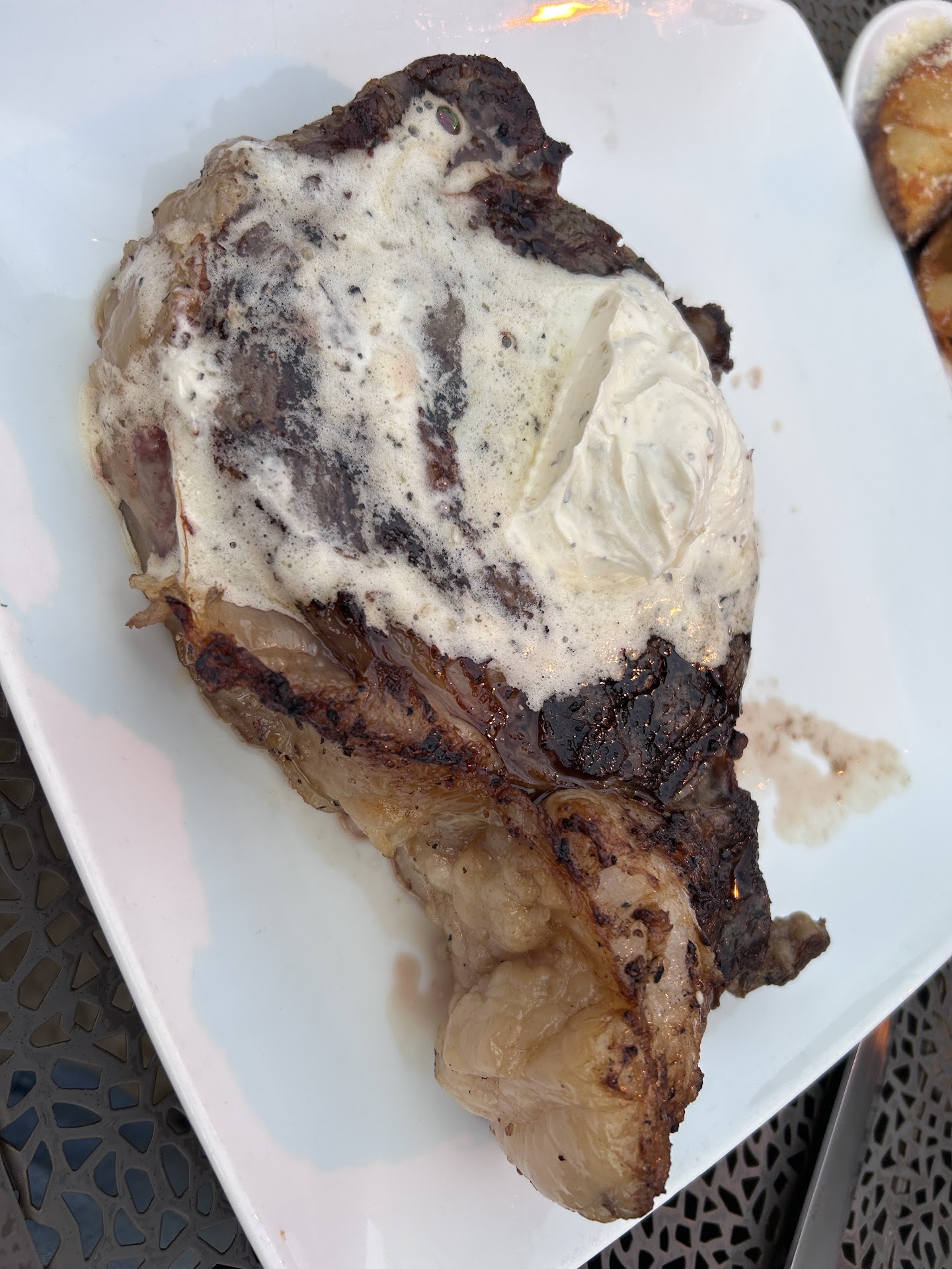 Ribeye tends to be a bit more flavorful, so I decided to go with the Ribeye. The menu states that it's a choice-grade steak. I would expect that a nice steakhouse would have a prime Ribeye if it's one of the only steaks they're going to offer. That's just my opinion, though. I did ask if there was anything off-menu, but there wasn't.