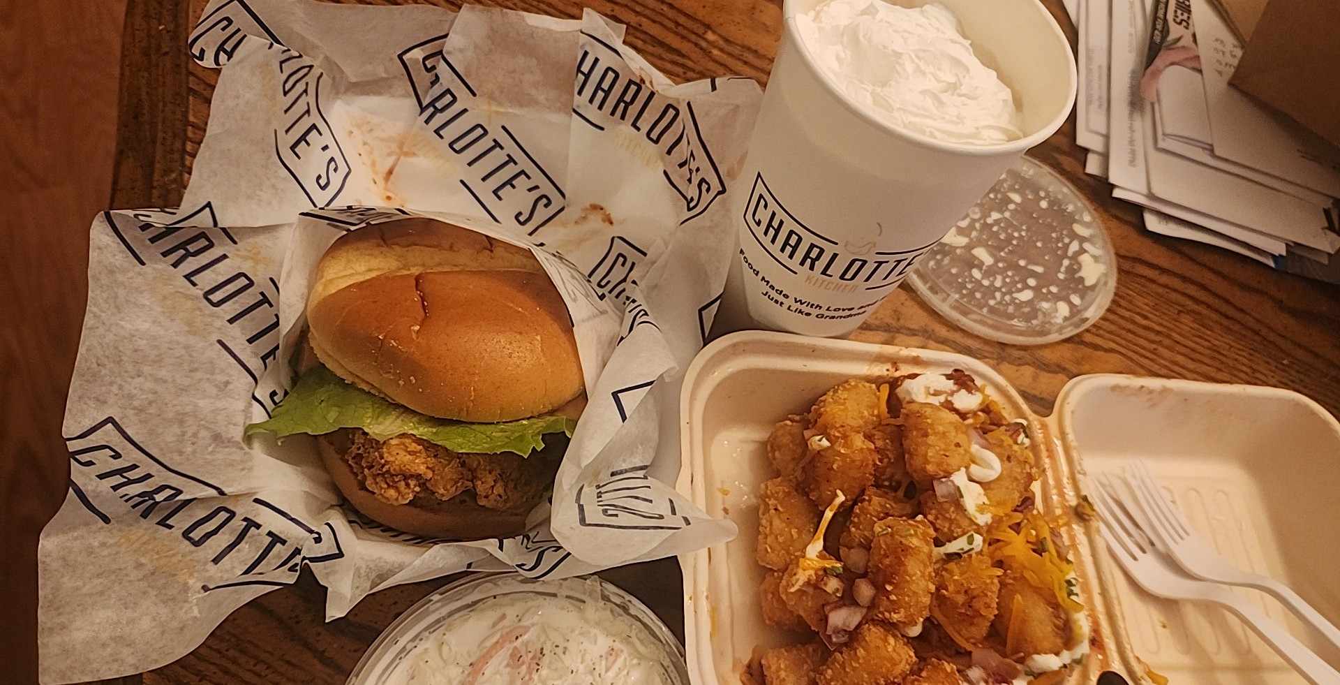 Made a second visit to Charlottes today. I had the #1combo with a crispy chicken sandwich, paid the upgrade charges for some cheese curds, and a strawberry shake. I was very pleased with everything again. Food, service, quality, and quantity of food. I paid $16 for my entire meal, with the upgrade charges. With the size of the sandwich, the quantity of the cheese curds, and the quality of the shake, I feel like I received my moneys worth. My compliments again to the staff, I donāt believe any of it could have been any better...