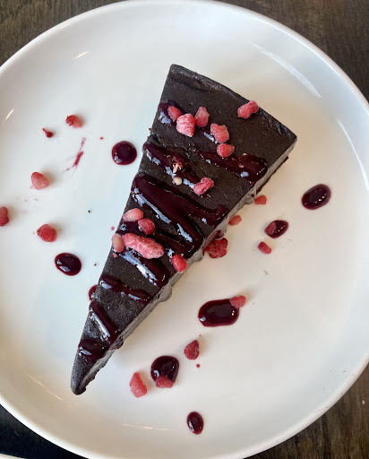 What a find! Stopped by for coffee and a snack after walking the River Prairie trails. The place is gorgeous: stunning bar, comfy seating, lots of glass and light, high celling, beautiful light fixtures - kind of a modern European feel. We were greeted warmly and then seated ourselves. Our server, David, was friendly, knowledgeable, and fun to talk to. We had espresso, chai, and shared the non-cheese charcuterie board. The board was accompanied by a warm crusty loaf of thickly sliced bread (GF avail-able) that I used to make the most delicious little prosciutto sandwiches. Another memorable treat was the positively addictive rosemary walnuts. We decided to split dessert and chose a slice of the flourless chocolate cake. The cake was accented by some raspberries that leant a perfect pop of brightness to the rich, Belgian chocolate cake. This was simple food done perfectly and we loved it. So much so that I brought my husband and daughter back later that afternoon for the cheese charcuterie board, sandwiches and drinks. Same great service and delicious, fresh food. This warm, sophisticated, and charming...