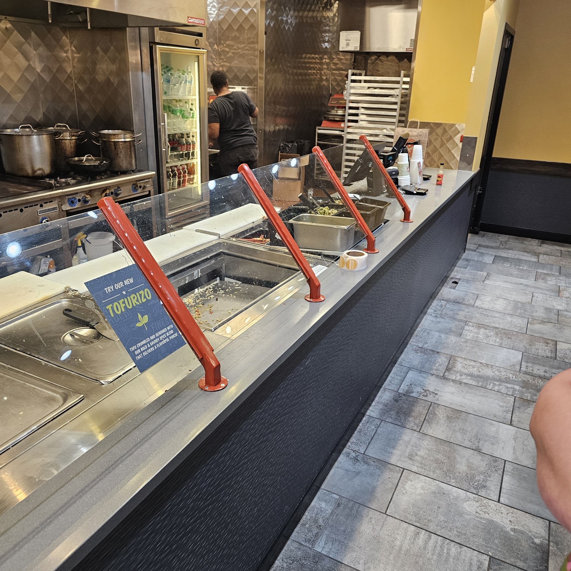 When they had someone else cut the food up to give to us it was like we inconvenienced them. The 1 worker seemed rude and more interested in talking to the cashier as they seemed to be friends and wanted to talk to each other more than any of us 3 customers at the time. When we had to wait for the food to be cut up to go into our burrito that then made the burrito not cold but definitely not hot, maybe warm.
