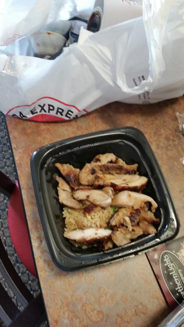 Read moreI travel for a living and if there is a Panda Express close by my hotel I will always eat there at least once, I always order the same thing, a Bowl of fried rice with teriyaki chicken. I am in Ankeny Iowa right now and went to the only Panda Express in the town, the serving was very small in comparison to what I am used to, so the second time I went I asked the guy if I could have a little more rice and he told me "no" because they have standard serving sizes and wherever I had gotten it before must have been giving me way too much(25 to 30 other Panda Expresses). I left and went to the Altoona restaurant and ordered my regular order and the pictures here is what I got. I am used to the bowl being so full the lid is always about to burst open and the chicken is pressed into the rice, and on this one, when I first took it out of the bag I thought they had made a mistake and thought I had ordered just the chicken. The chicken was nowhere near the lid let alone about to burst open. This bowl with rice and chicken was barley half full. I don't know what's going on in Iowa but I will never throw my money away visiting one of your Panda...