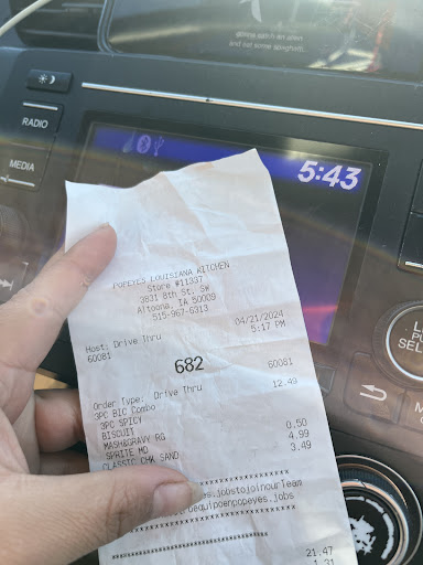 Ā Ā Ā Read moreIf i could give it zero stars i would! I was in there today. When they didnāt give me all my food i paid for i had to show them my receipt. I wish that was the end of it! A lady was arguing with me after seeing my food what she had just given me and what was on the receipt telling me she had already given me my food. After i told her calmly she still hasnāt given me all my food she had to read the receipt multiple times to finally understand o she hadnāt given me all my food. Then she finally gave me the rest of my order! O you would think that would be the end of my story! Its not while we sat there and ate the people that ordered right after us didnāt receive some of their order for over fifteen mins they waited and that lady got upset with the manager wanting their food or a refund and the manager told the lady she can go on with all that complaining shes wasnāt having it. So i got to hear that lady and the manager fight about food or a refund for over five mins the lady waited i donāt know if she was still waiting for food or if she got a refund but after my family all got sick with the runs immediately after leaving the restaurant Iām wondering if my food wasnāt sabotaged or just old been sitting there for a long time! my whole experience with this place is over! I wont be going back to Popeyes the food I thought was good gave us all food poisoning and the manger and the lady that took our order need to be fired or sent back to training class! This is exactly why fast food is in decline and people arenāt even going out anymore we dont want to fight with people to get what we order! After we pay for food that prices are going up but the quality of the food isnāt and neither is the service when people cant read receipts that took your order three mins ago and wont give you what you paid for! Or they poison you when you have a problem with them not doing their job right! I hope the gm fires everyone in that store! Kids could do...