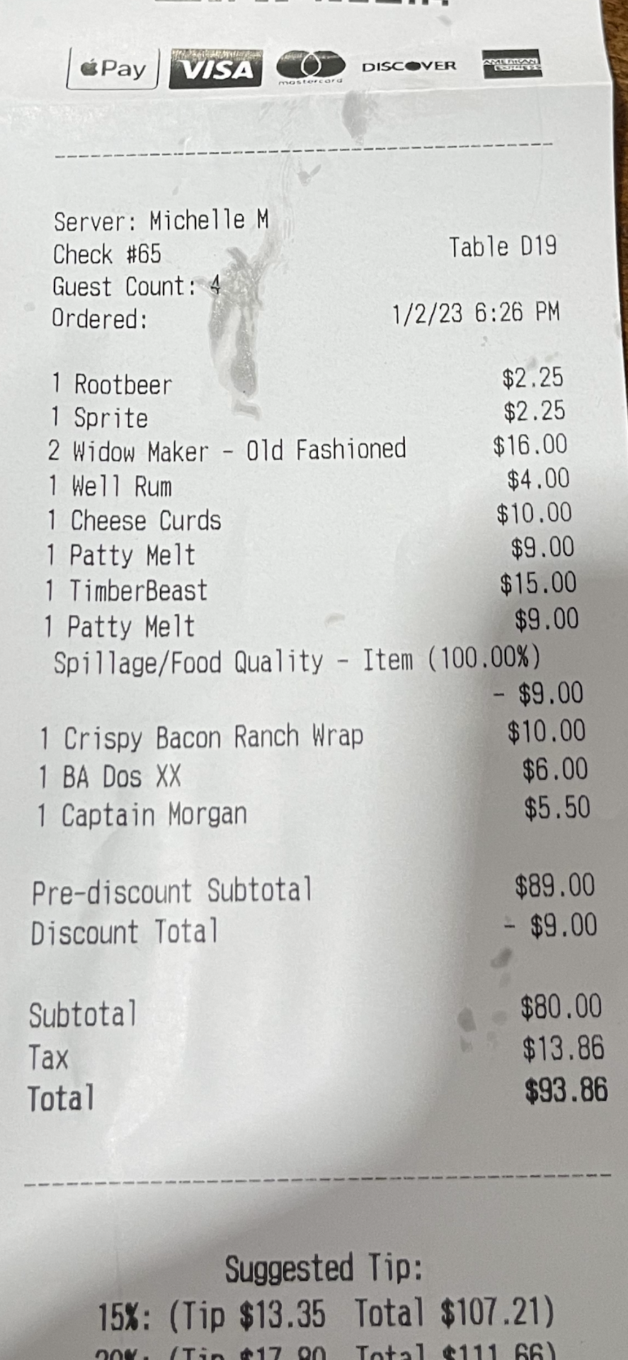 We have been at this establishment 3 separate times. The first time the staff wasn't rude per se, but I wouldn't have called it good customer service either. However, the last two times we were there, our servers were stellar! White male server was a ton of fun, and even though our dinner experience was lack luster (I'll retouch on this), he was killer and definitely kept our experience from being really annoying. Our female server we had the second time was so sassy and funny! I loved her! Our dinner experience here, however, has never been very good. Personally, I would say it's a bit overpriced. The second time we came to this place, my husband had ordered a chicken salad, and I ordered wings. Our male server was super attentive, but our food no joke took an hour and 45 minutes to get to us. Half of the food in our group came out first, and then the other half came out (one of the wing orders wasn't even right) and the salad my husband ordered came out an hour and 45 minutes after we had ordered! Went we finally got the chicken salad out another worker had come overshe told us the chicken had to be defrosted? We were pretty disappointed with the experience š. We weren't offered for the salad to be taken off, which is fine I guess if you don't want people to come back. I think honestly, what mostly made us mad about that experience was the lame excuse they gave us about defrosting the chicken when half of the orders weren't chicken or were wings that came out in weird intravals. If it is just because your busy just say so. The two stars are purely for the two servers. The manager (I'm assuming?) definitely didn't help...