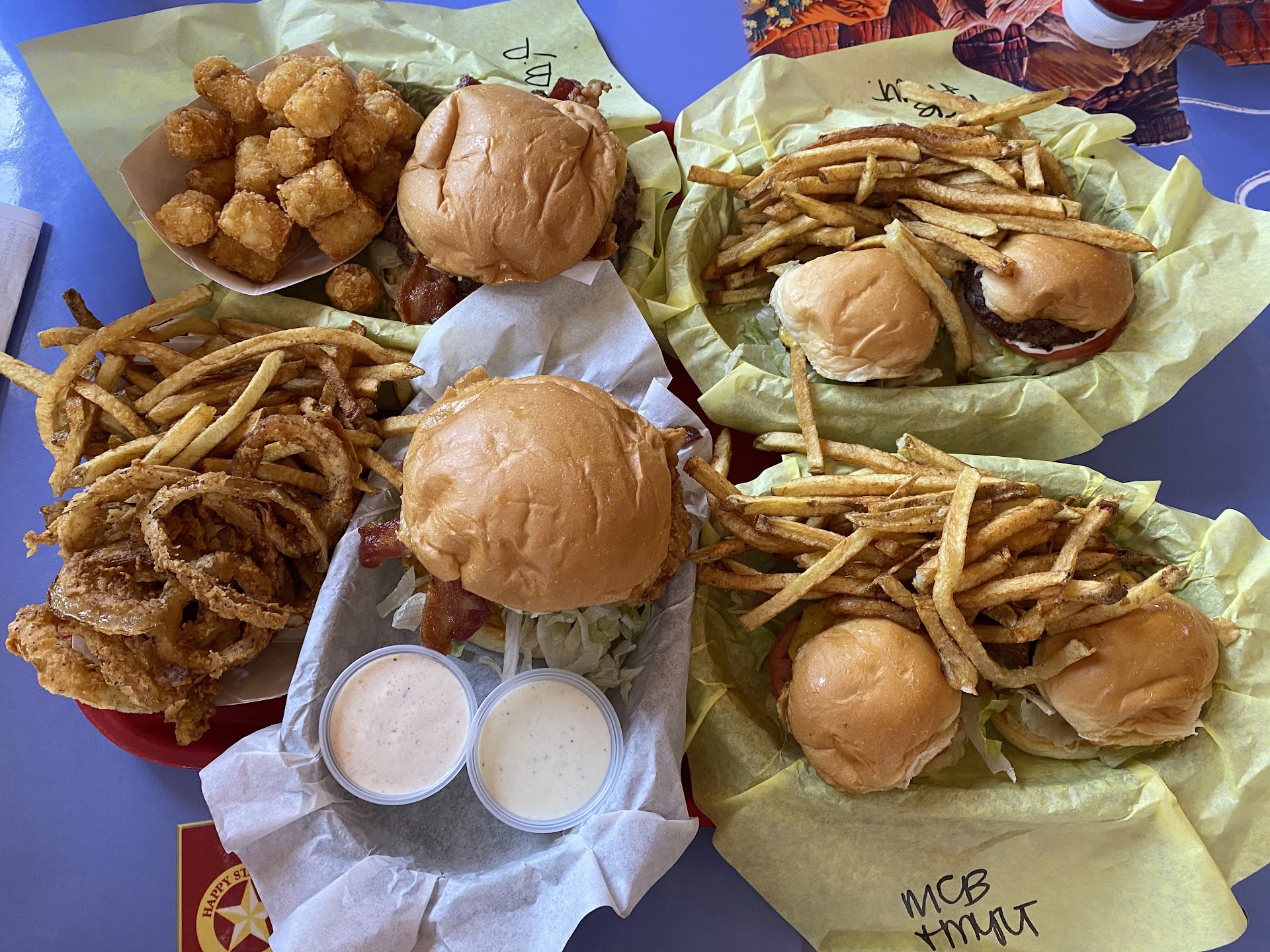 Read moreTraveling from AZ to IL, we grabbed carry-out on our way to the hotel. Searched burger joints on app near hotel, Blue Sky had 4.6 rating and glowing reviews. Ordered inside, sign says burgers are pink, specify well done if desired. First cheeseburger, pink, mayo, ketchup, lettuce, tomato, onion. Second burger, well done, mayo, ketchup, lettuce tomato, large fries, large tater tots. Ten-minute wait, $32, take away to hotel, five-minute drive. Sat in hotel lobby immediately to eat before checking in. Both burgers beyond well-done and dry like hockey pucks, first burger no onion, second burger no lettuce or tomato. The large fries and large tater tots are enormous but saturated in oil and smelled like old oil. The burger was thin and wouldn't have been good even if not severely overcooked. A few fries or tater tots were all we could stomach. I called, spoke to the manager, he apologized and offered to credit our card, but I refused. Wanted to return to give them a chance to make the order correctly but it was after 8:30 and they close at 9pm. I would much rather have gone to Culver's, Burger King, Wendy's or even McD's (which I hate) over this place. Would give zero stars but one is the...