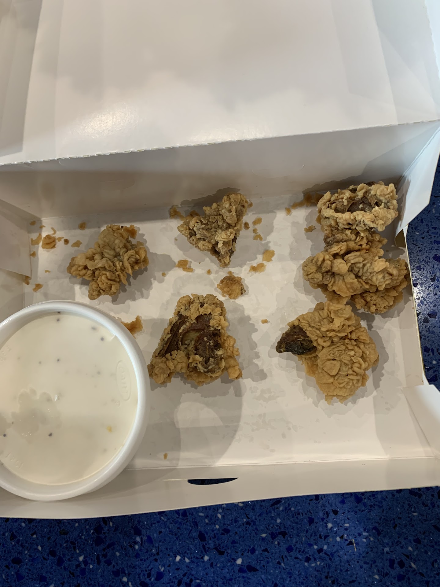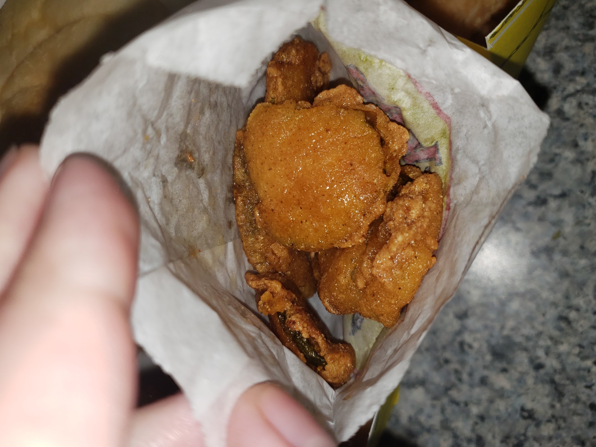 Read moreWent there for the first time at that location at about 8:00 p.m they were busy had 4 cars in front of me and it took 40 min to get my food in the drive thru. I ordered two pieces of fish and a 3piece chicken combo unbelievable the chicken was not fresh then they gave me two wings in the 3piece and a thigh not worth the price,if they were out of chicken or did not want to make more they should have told me that's all they had,I could have ordered something else,on top of that my fried pickles were old just really disappointed, should have gotten out of line and just went to popeyes. I will say I never had that experience at Grand and I-40 or Coulter and I-40. I've had two bad experiences at Gem lake location similar situation except I was dining in and will never go back to that location. One thing that was concerning is they had 2 people not wearing mask the woman helping make the food and young teenager making drinks and then the guy boxing chicken just had his mouth covered. Hope management takes care of that last time I checked employee's in restaurant's are required to where mask. I know things happen sometime, so I will give them another try to see if it's a better experience. First experience during Covid-19...
