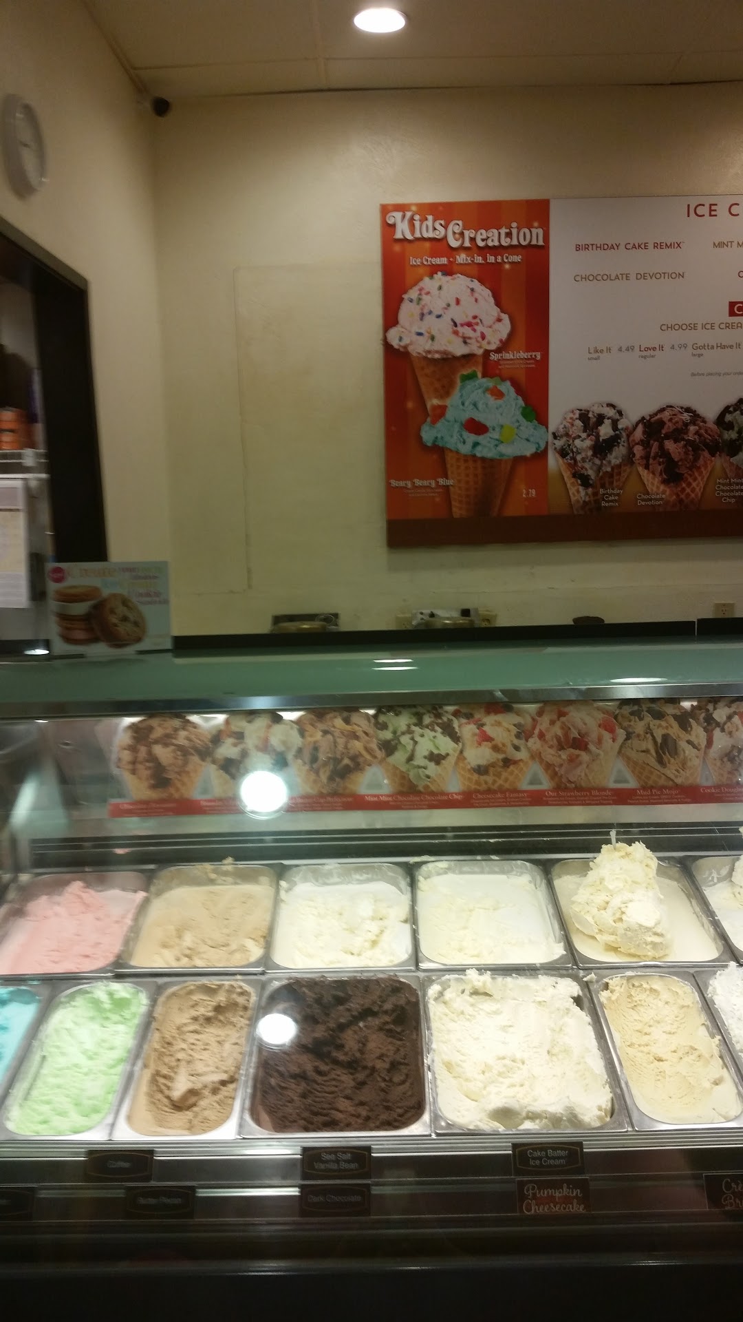 Read moreBottom line here? I LOVE Coldstone Creamery but this location has me wondering what's going on here...?! 1st the manager or owner (is this a franchise location? ) was pre-occupied with whatever so much so that we felt neglected. He was standing right there with an employee and made no attempt to address us as we waited too long for service. Nor did he get his employees to step up. It was entirely irritating - not something you want when you're expecting to pay a premium price for a premium ice-cream with great service to go with it. But what really had me wondering is that the ice cream was very definitely different than any Coldstone I've been to. I'm a long time ice-cream aficionado that knows the difference between the ice cream at 31 Flavors, Marble Slab, Etc... Coldstone is Supposed to have near to 18% butter fat content similar to Hagen-Daz (more than the Marble Slabs 16% & 31 Flavors 14%).I know the difference and the ice-cream was not up to par for Coldstone. It made me think that something funny was going on ....? Could it be that he was substituting some other ice-cream for the real thing? I'm certain it would cost...