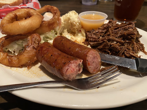 Read moreThis restaurant has so much potential and some frustrating shortcomings for the customer. The BBQ is truly delicious. The ribs are special and worth taking note of with a smoky, sweet, savory, and tangy sauce. The brisket was melt-in-your-mouth goodness. Their tea was perfect as was their sweet, tangy, and creamy potato salad. The slaw was just okay, nothing to write home about. The toast was burnt however, but as toast not a big part of the meal. I was extremely sad about the bbq beans. I don't even know who would think to mix bbq sauce in water and pour boiled beans into it to serve, but is what it both appeared as and tasted like. The service was outstanding. I never needed anything and always had my waitress willing to answer questions and help. There is one last negative and positive. The negative is that I found it gross that a busboy had to squeeze between tables with a dirty cart to clear and empty dirty tables. Plates should be carried to the back (even if it requires more than one trip). The positive would be that the decorations and energy was very Texas and contained many decorations that were fun to ponder. Again, for me the pros outweigh the cons, but the cons really could use a fix. Ibwould certainly come back for more of those...