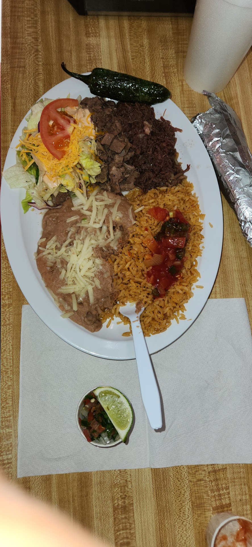 Read moreI categorized this place as a Mexican fast food restaurant. I ordered the combination plate that includes two meats, spanish rice, refried beans, and a choice of corn or flour tortillas. I chose barbacoa and lengua with the flour tortillas. My wife chose the taco plate, it comes with three choice of meat tacos, beans, and spanish rice. The tortillas are ok if you keep them wrapped up and don't open the foil. Once opened, they will turn hard slowly if not eaten in an ample amount of time. The rice is dry, bland, and tasted grainy/earthy. They do have very good drinks a variety. A very good assortment of salsa and / or chile sauces. Both plates had very good tasting meat. There was a limited amount of seating for the large incoming number of people, but I guess it was just fine for everyone. They have a drive up and plenty of parking space. If you bring kids that like Mexican food, it's a good place. I didn’t see any toddler or a child's menu. You order off an overhead board. They bring you the order to your table. The beans are ok. They just need some doctoring with the salsa bar. Great presentation on the plate. If you're in a hurry and very hungry, it may be worth a try, but not a sit back and relax kinda place. My opinion. The staff is friendly, attentive, and professional. They do take care of what you...
