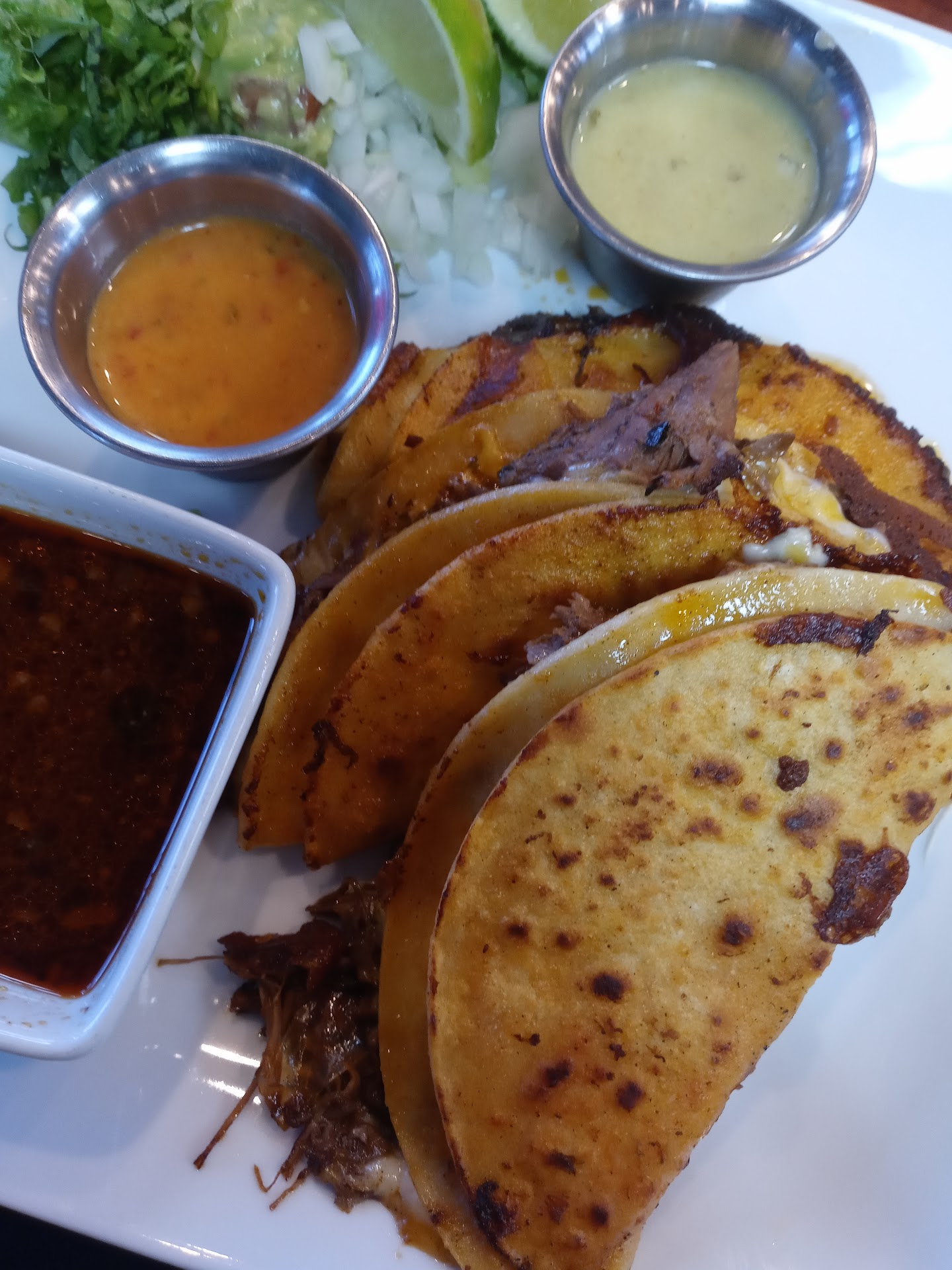 Read moreI got 2 orders of the birria tacos because I've heard some really good things about them and I figured they would be good and worth it based on reviews and what not. I should have got 1 order or honestly got nothing at all. The birria tacos were flavorless? But also had a hint of the taste of mold. They tasted like what mold smells like and I was very disappointed and now a bit worried about getting sick. The meat was also VERY fatty and I'm just not a fan of that. I've had a lot of birria tacos, from alot of the places here and if I'm being honest these were some of the worst unfortunately. The rice was bland as well. The beans were good! But those are hard to mess up. The chips and salsa were good, salsa was very spicy but I'm half&half so that is a me problem. I will not be going back, but I'm glad I gave them a shot! I'm sure their food is good for others. It's...