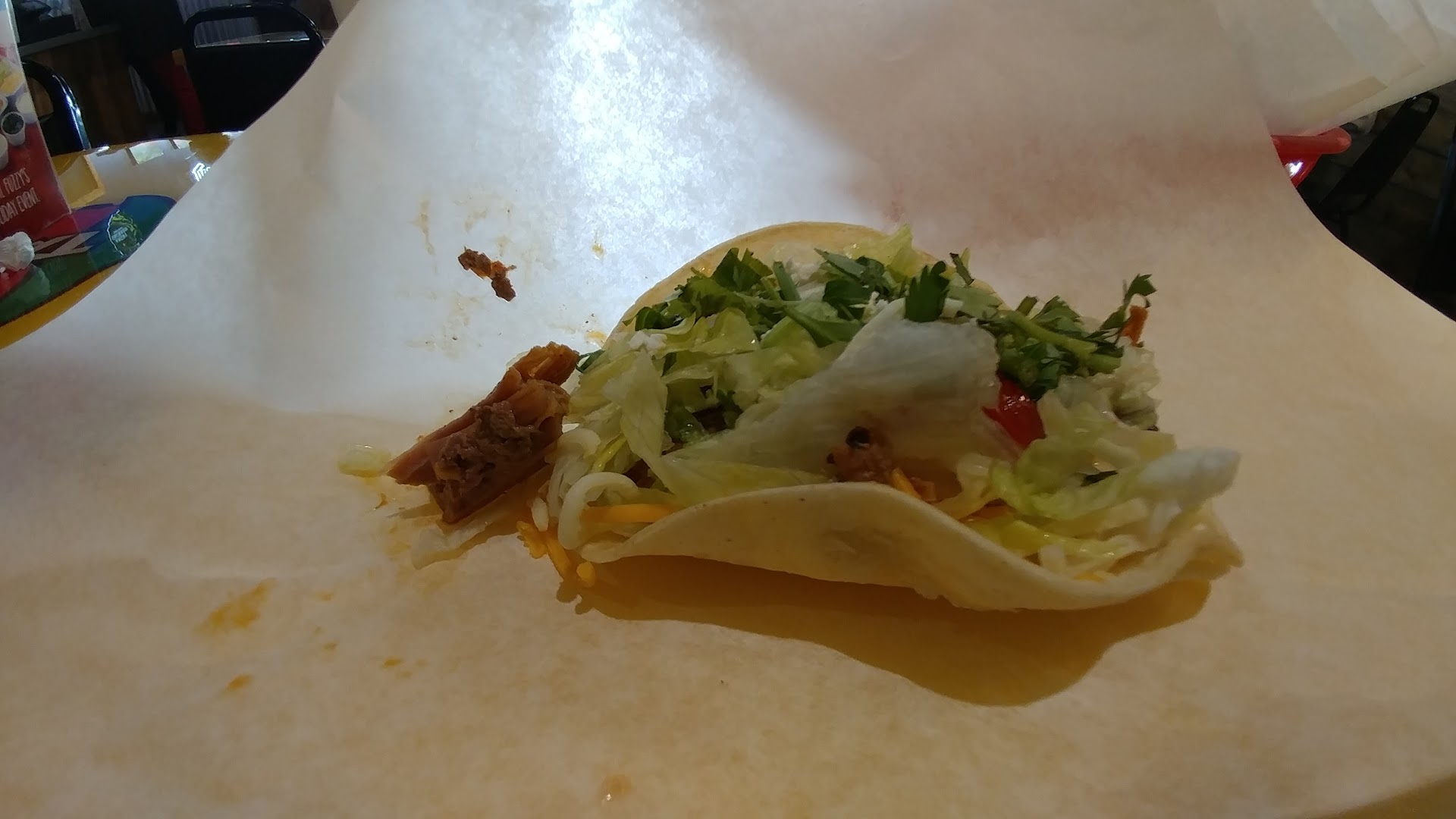 Read moreI had never been there before so I stopped in for lunch. There was no line so I got to order immediately, two tacos and a tea, and it came to…$17 and change, which made me go WTH?? The guy apparently misheard me and thought I ordered two brisket nachos. So he had to fix his error, but unfortunately for the line growing behind me he didn’t know how, so he took off to find the manager and bring her back to do it. Got my receipt and sat down and waited…and waited. After 15 minutes I tell myself, “Surely it doesn’t take 15 minutes to make two friggin’ tacos.” So I went to the window to ask if there was a problem and they said didn’t your page go off, because your order has been sitting here for 10 minutes. And I am going, what pager? Seems the order taker guy didn’t give me one. The lady was nice and remade the tacos immediately since the first ones were cold by then. I sat down to eat and brother, those corn tortilla tacos were TOUGH. I mean shoe leather tough…jerky tough. There was no one-handing those babies, you needed both hands to get a good grip to literally tear off a bite. Of course, when you have to manhandle a taco all the ingredients squish out the far end, so I had to eat most of my tacos off the paper with a spoon. I asked to talk to the manager and told her, Natalie, “First off, my tacos tasted great. But they were THE toughest tacos I have ever eaten, and that is just wrong”, to which she replies, “You’re absolutely right, it shouldn’t be that way.” In the course of my complaint, all she says (three times) is that it shouldn’t be that way. So I finally stopped talking, waiting for her to say something besides what she has said so far, and she just looks at me - no apology, no let me make this right, no nothing. Dead silence from her. The sound of crickets. I gave her several seconds to respond but no dice, so I said, Well you were told, and as I turned to leave I told her I KNEW I should’ve went to Torchy’s. And STILL nothing. Truth be told, I don’t know if I’ll be going to Torchy’s next time or not, but I know where I’m NOT...
