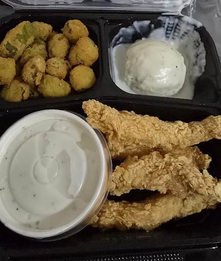 The first 2 times I ate here it was really good. I was hooked on the pimento sandwich. I guess it was a fluke though, because every time after it's been disappointing in one way or another. After the first 2 visits, the pimento sandwich no longer had any sauce on it and the honey packets I asked for were never in the bag. Twice I've ordered a meal with mashed potatoes and gravy, both times they had no gravy on them. I went in once pick my online order up, to make sure I got my sauces, to see an employee sitting on an orange bucket on his phone in the kitchen right in front of the registers. He looked up at me with 0 acknowledgement and went back to whatever he was doing on his phone which was off putting to see that in a kitchen while other employees handle my food with no gloves on. The last time I went the pimento sandwich tasted like they used chicken that had been cooked earlier in the day. It was so hard, dried out, and nasty I threw it away. I also ordered jalapeno poppers and they charged me for ranch. They never used to charge for ranch with poppers. It wasn't like I asked for more than one so you'd think one would come with the poppers? Especially considering it was the only part of my meal I could actually eat after throwing my sandwich away. Seems like ever since my first 2 visits the food/service has been getting...