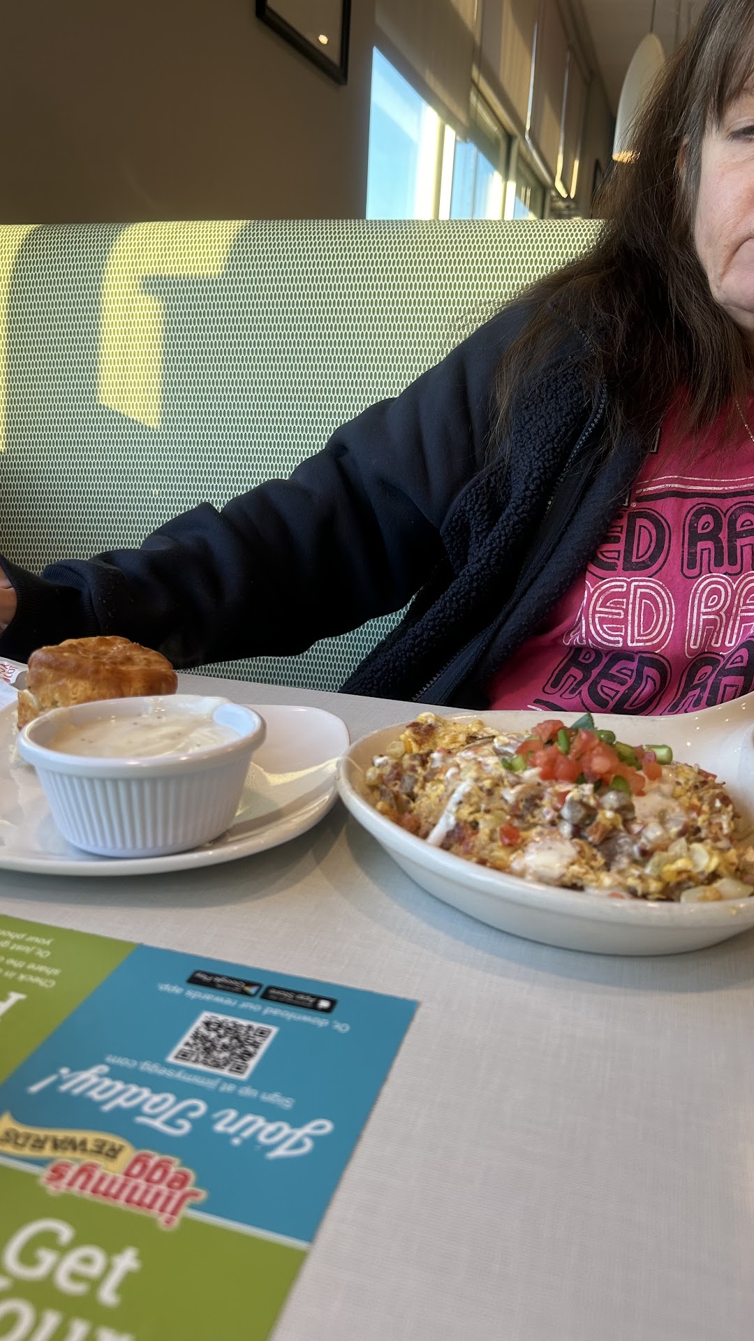 Read moreI love Jimmy's Egg... on Georgia. Not sure what the Soncy location is doing, but the most professional and on point people there that were the hardest workers were the bussers and a young gentleman getting things done - in and out of the back, on a mission. The floors were filthy with smashed food and trash, the men's bathroom was disgusting and unkempt, soap dispenser wide open, grime everywhere. The host was nowhere to be seen when we walked in, was just talking with the servers in the back and not even paying attention or caring if people came in. The server I had was a decent girl, but brought the check before we were even halfway through our meal, and never even asked if I'd like a coffee refill. These are basic things, and as a former restaurant owner myself, I'm surprised this location is even making it. Definitely gives the Jimmy's Egg name a bad rep. The food isn't even consistent. Josh and his team on Georgia are operating at 110%, if you want Jimmy's Egg go there. This location needs to be rescued badly. I will...