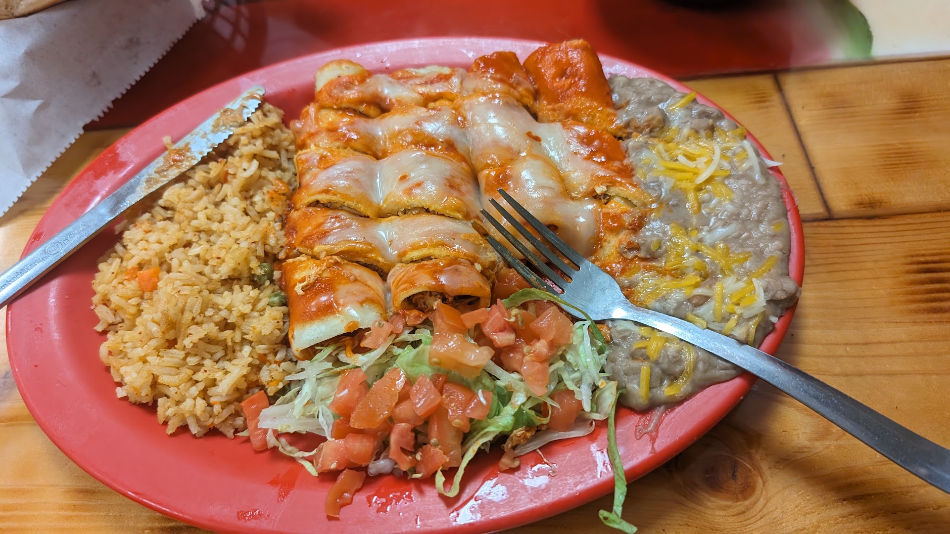 Read moreThis place is a one person staffed place and takes FOREVER to get your food, or refills, or your ticket to go. DO NOT COME HERE ON YOUR LUNCH! That being said, the BBQ ribs would've been amazing had they not slathered it in BBQ sauce. The hot sauce and rice and beans were extremely good tho and so were the homemade chips for the appetizer (good luck getting a refill on hot sauce too). Nothing made an impression so well that I'd come back and deal with the excruciatingly slow only waitress in...