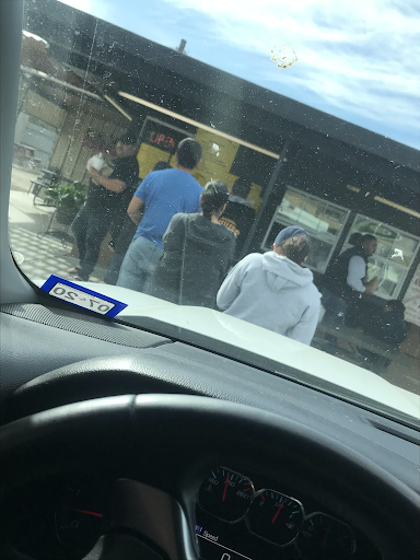 Window service was friendly. English & Spanish spoken here. I did not see a bathroom, but also didn't ask.