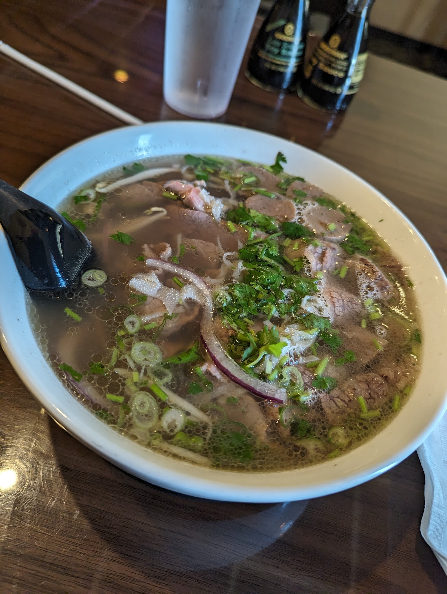 So this was my first time to ever eat at this establishment and I had my doubts being that it's mostly a sushi place, not saying that's all they serve but it is in the name. First the place itself is a kinda upscale environment, don't want to use the word boujee and make the wrong impression, good or bad, but it's definitely not the same!! So I do not like sushi, doesn't matter who's making I just don't and may never , so that's where my doubts came into play. We ordered appetizers crab won tons I think, sorry for not being as detail oriented on this part, and they were probably great, I just don't like cream cheese , but we did order lettuce wraps, and my goodness!! They were amazing !! Simple yet very,very tantalizing for my taste buds š , very rich with flavor and stupindensly delicious. If that's all I ordered , that would be enough to satisfy my hunger!! Sushi was ordered by others in the party , the western crossing and the gecko, seemed like it would taste good, by the way it looked, I hope the pics I took do it justice The Pho we ordered was good, but i really just wanted to try the broth . We also ordered the shrimp tempura and crab tempura and both were nice portion size and had some nice flavoring going on. Overall had a really good time, tried some new menubitems that I probably never would have , now the only negative thing I can say about them is that my wallet was very light afterwards, so please be prepared to dish out some greenback or start washing some dishes!!! I think I would go back but just order the lettuce, and I hope you find this review helpful enough to encourage you to take a gamble like I did!! Be safe,have fun, make...