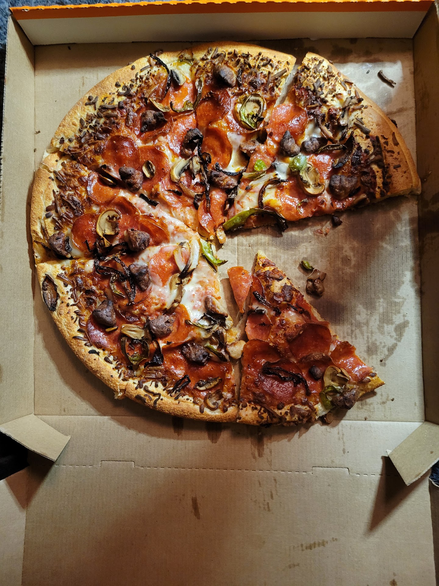Consistently Old & Stale I have gone to this location on MANY occasions and it wasn't until the past year that I have started having old stale Pizza, can't get anyone on the phone for a call in order. Last week I called a pizza in so that it was fresh and when I picked it up it was old and dry. Called tonight the prime place an order no one answered the phone, again. I went by to see if it was open they were open, but no one answered the window. I went back around after seeing someone go through the drive-thru and tried to place an order and the young man told me they were out of dough and closed early. Where is the sign that says you closed early, while blinking the flouresant "OPEN" sign? This seems to be an ongoing habit at this location and it gets really old really quickly for a pizza chain that I absolutely love. 12-05-22 ordered another pizza giving another chance, order was completely wrong and fixed by someone who had long nails with black gunk under all 10 of them. 12-21-22 ordered at the window cause no one answers the phone again only to get cheesy bread that should have been fresh(if you've had cheesy bread you know the difference between fresh and old) and it was so hard when I drive it over with my tires, it retained its shape. Pizza was wrong too. After driving up and seeing all 4 men outside smoking when driving up and asking why the cheesy bread isn't fresh, being told IT IS as fresh as I gets. I am not giving this location another chance to screw up and allow me to pay for it. Still no one answered the phone.