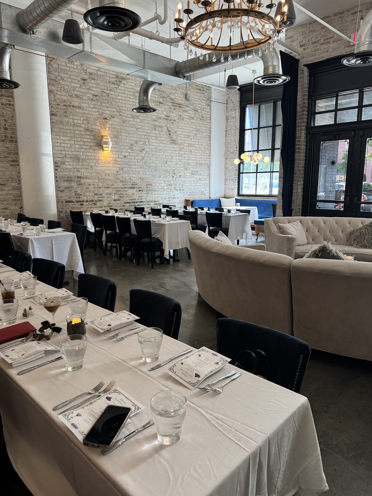Read moreI was really excited to try something new with my husband and loved the idea of the theme but was really let down by our experience Friday night . I love being able to have a reason to dress nice and have good drinks and even had to make sure my husband didn’t wear his hat since there were house rules(which I loved!). When we got there I had made a reservation and were seated immediately but were sat in the very back of the restaurant right next to the door to the kitchen. I could barely move my arms because the were constant employees going by and everytime the waitress checked on us she was constantly having to get out of the way of another employee. I thought the inside looked awesome and enjoyed the vibe but I only experienced that walking to our table since where we were sitting we had no view of anything at all. I wanted to enjoy the live music but was on the other side of a curtain and the music was muddled by a group of loud drunk men at the bar (which is not like someone you would have at your mothers on a Sunday like stated in the house rules) and the employees saying “coming in” every other minute they were walking into the kitchen which at times were screamed behind us. And if you are going to go with a strict theme then I think you should stick to it. Like I said i forced my husband not to wear a hat because it was specific on the dress code but more than half the male employees would come out the kitchen wearing shorts and backward hats and the were out on the floor ALOT. The one view that my husband had was of the back of the huge chairs and the tv on the back wall, which they were playing black and white Frankenstein which was actually pretty cool and went with the whole theme but the drunk male crew that I spoke of before had them change it to the baseball game that played in black in white on the tv that I could see which was above the bar! Extremely ruining the atmosphere. I went here to have a romantic fancy night out with my husband. If I wanted to go sit in a back of a bar and watch a baseball game I would of gone somewhere else! Needless to say we had one drink and left. The only reason I gave it 2 stars was because the drinks were actually very very good and the inside of restaurant was beautiful(from what I saw). I just think they can afford to lose those two tables where we were sitting, with our table right by the kitchen and the other table right next to the unisex bathroom that constantly has someone waiting in line right behind you. We would like to give it another chance but it won’t be anytime soon....and after our whole experience it really pissed me off when we left and there were SEVERAL tables open near the band. I mean hell we would of even been happy with the bar. Maybe if I would of just walked in and said we didn’t have a reservation we would of had a better experience but what was I thinking planning ahead. Maybe set the same standards for your employees that you expect from...