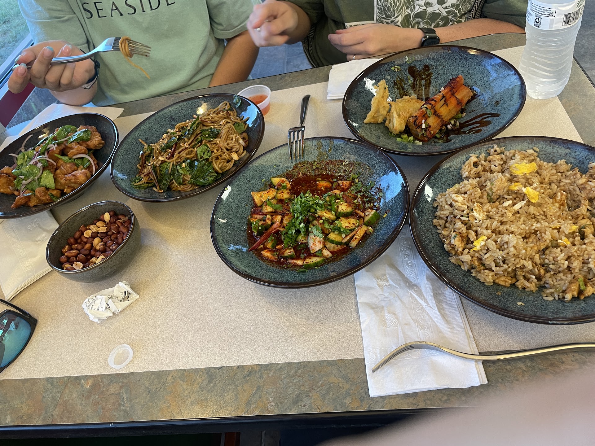 I got the beef rice, which was in the biggest bowl I've ever seen. The beef was so incredibly tender, omg. My brother got the sweet and sour chicken, which looked to be hand breaded and was absolutely delicious. We also got the spicy cucumber, deep fried dough sticks (I'm obsessed), and some gyozas. All delicious.