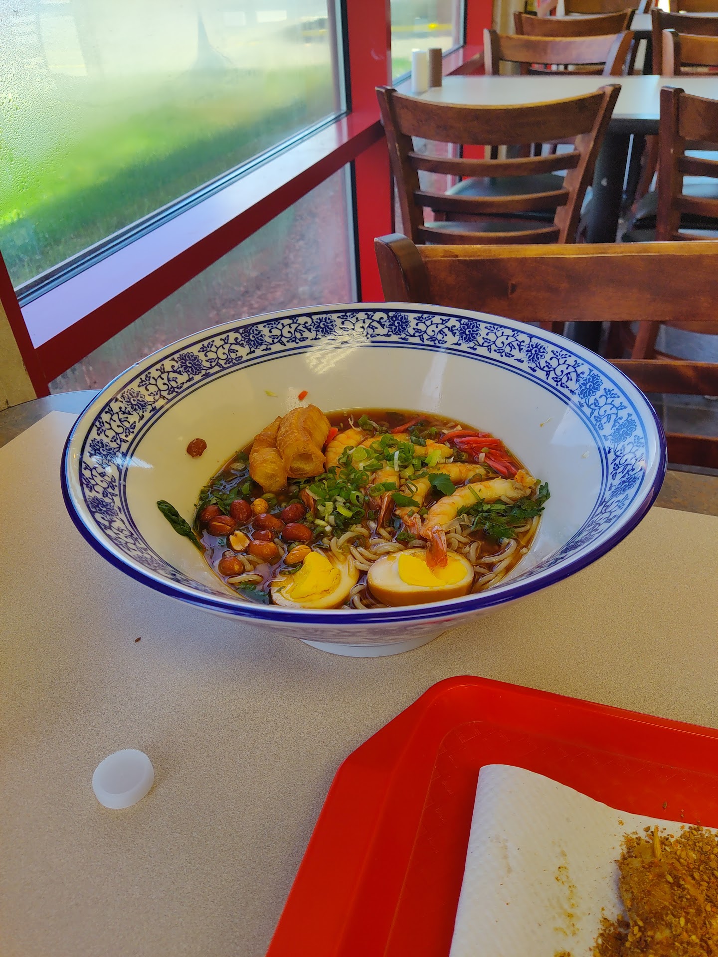 Not sure why it took us so long to come here. Food is super low priced but delicious. Fried rice has a hibachi flavor and chicken was juicy. Sweet and sour chicken has a light sauce and a huge portion. Special noodle was good but add meat for a complete meal. Gyoza, fried dough and spicy cucumber were on point. Wish they had a sweet soy for gyoza. Fried peanut not worth it, just a bowl of peanuts. We will be back. They need some marketing such as a Facebook at minimum. Great...