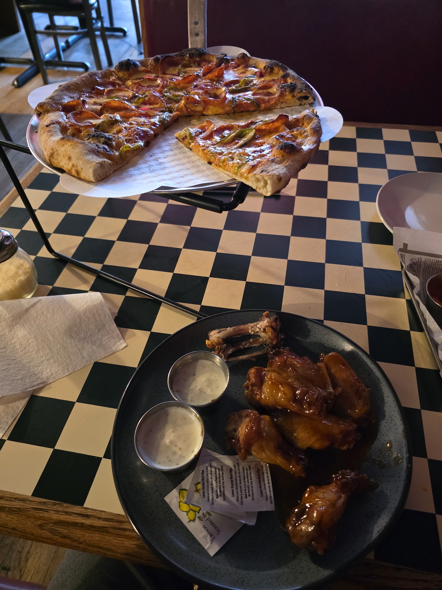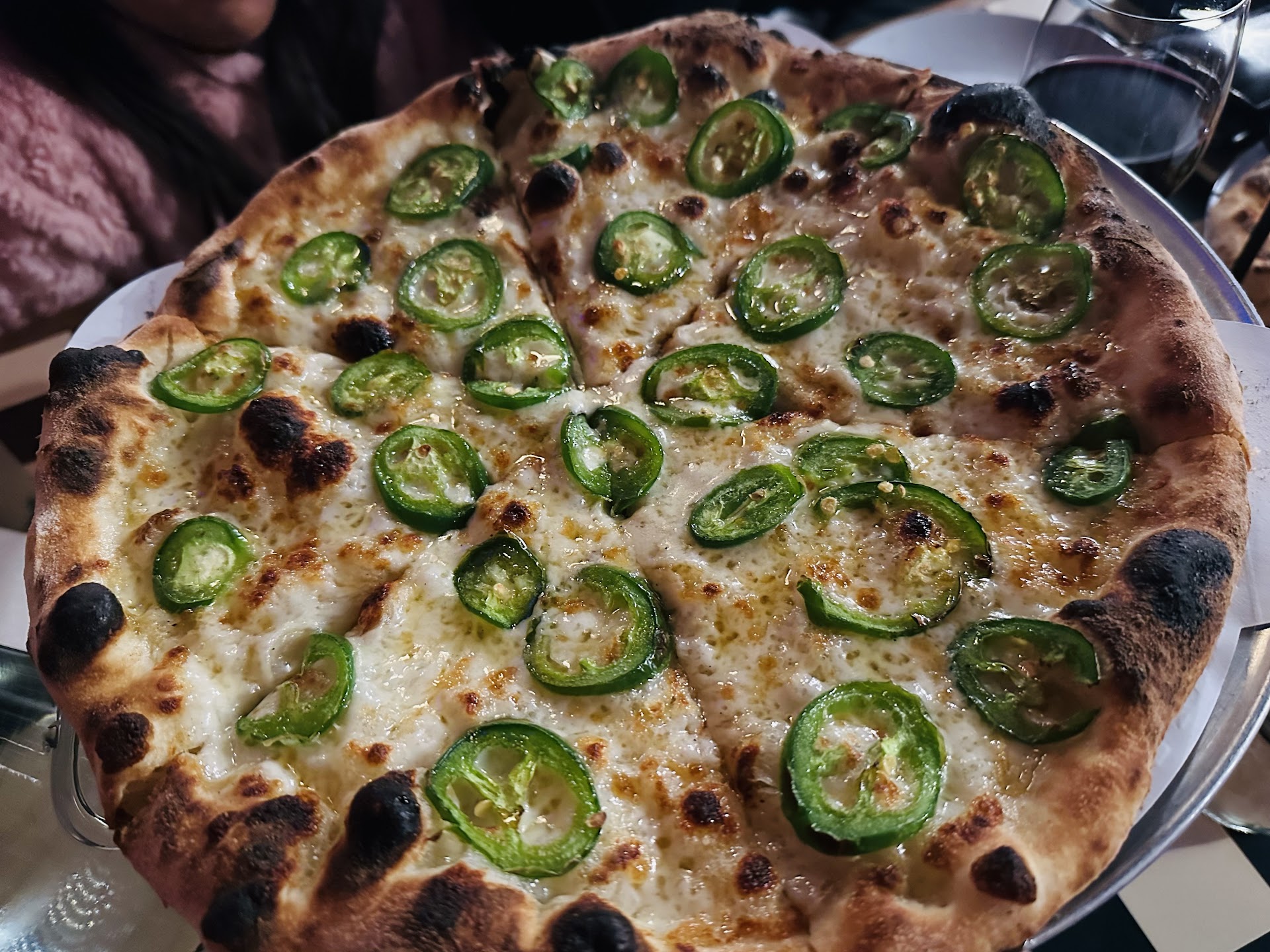From the moment I walked in I was greeted with warmth by the lovely Sydney, who accomodated me with a single table since I was dinning alone. She immediately brought me a menu, slices of sourdough bread and the creamest roasted garlic in an olive oil that had me just in pure love with the savors. I ordered a Hawians apple which has just the right amount of sweetness to join the creamy salty flavors of the roasted garlic. For a pizza I went with a medium "Radar Love" minus the meat and extra Basil. As I awaited my pizza and other server Nevaeh came by the table with Sydney and kept a great conversation til pizza was ready. The crust was toasted to perfection in the hearth oven manned by to Artisan chefs. All ingredients were recognizable with not anyone out weighting the other. I promise you this pizza didn't have a chance.đ Sydney finally suggested dessert, which I couldn't refuse since everything up until this moment was just awesome. She brought me a pair of conolis drizzled with chocolate and pistachios and it brought me back to places like "Yolondas" in The Bronxs I use to eat at as a child with my Dad and uncle. Hands down the best Armirillo has to offer in a Pizzeria styled restaurant. I love the place, the people, the service, the cleanliness and not to forget the music. I will return again as soon as time permits. Update: Time permitted me to visit again this evening of October 15th,2025. Nevaeh greeted me as an old companion who lost his way from good pizza, a prodigal returning to the warmth of the hearth oven, good music (The Cranberries, RIP Delores O"riordan) and awesome energy. Taylor's infectious smile made all entering smile as well. I was to enamored with the ambiance and food to take pictures this trip but I promise you, Nomad is Armirillo's #1 Pizzeria, hands...