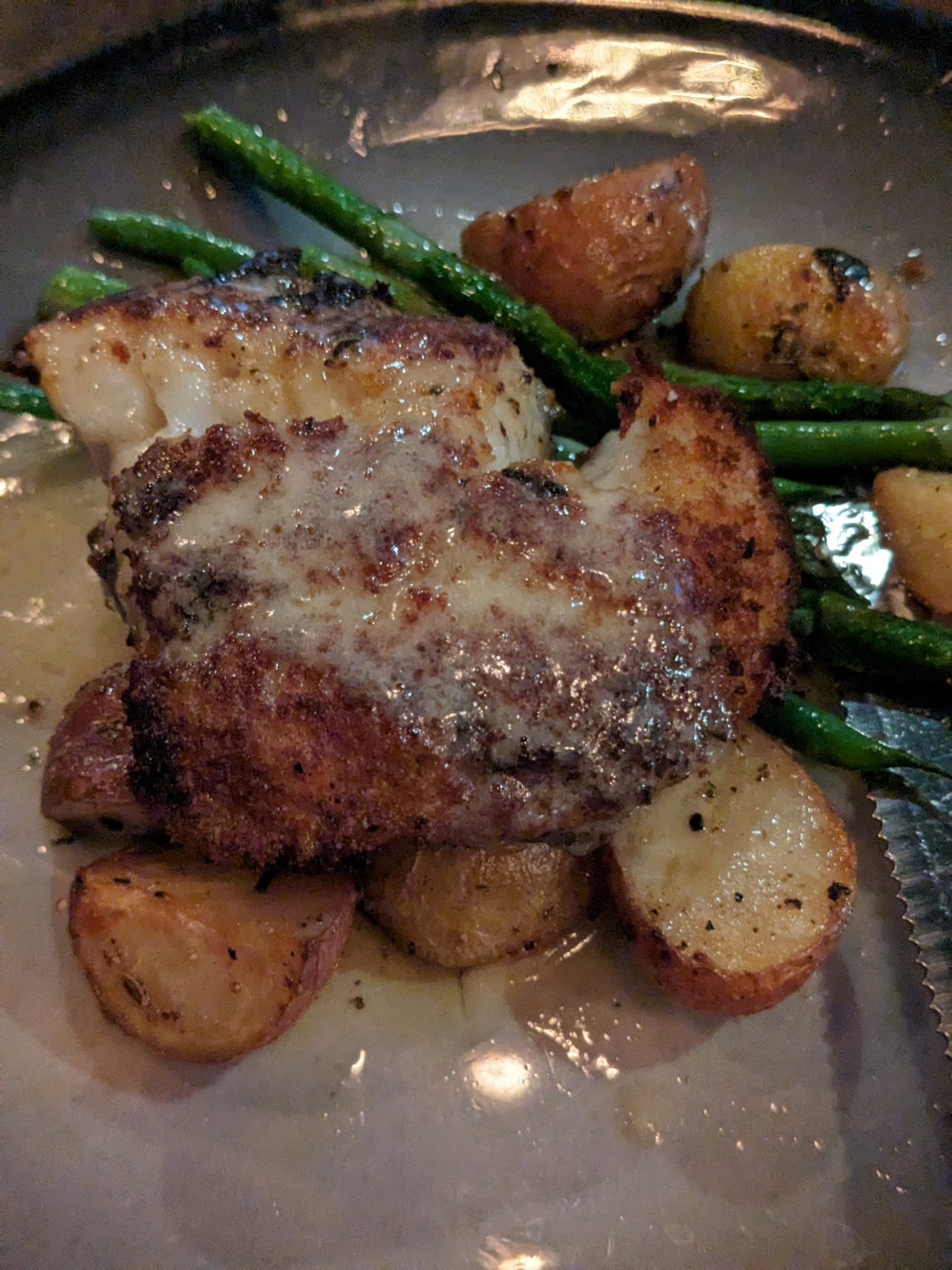 The chicken was also outstanding. Crunchy and moist. The asparagus was firm but tender, and the mashed potatoes were excellent. I must say it could have used a little more gravy as all that gravy was gone a bit before the chicken was. But then i am a sauce guy.