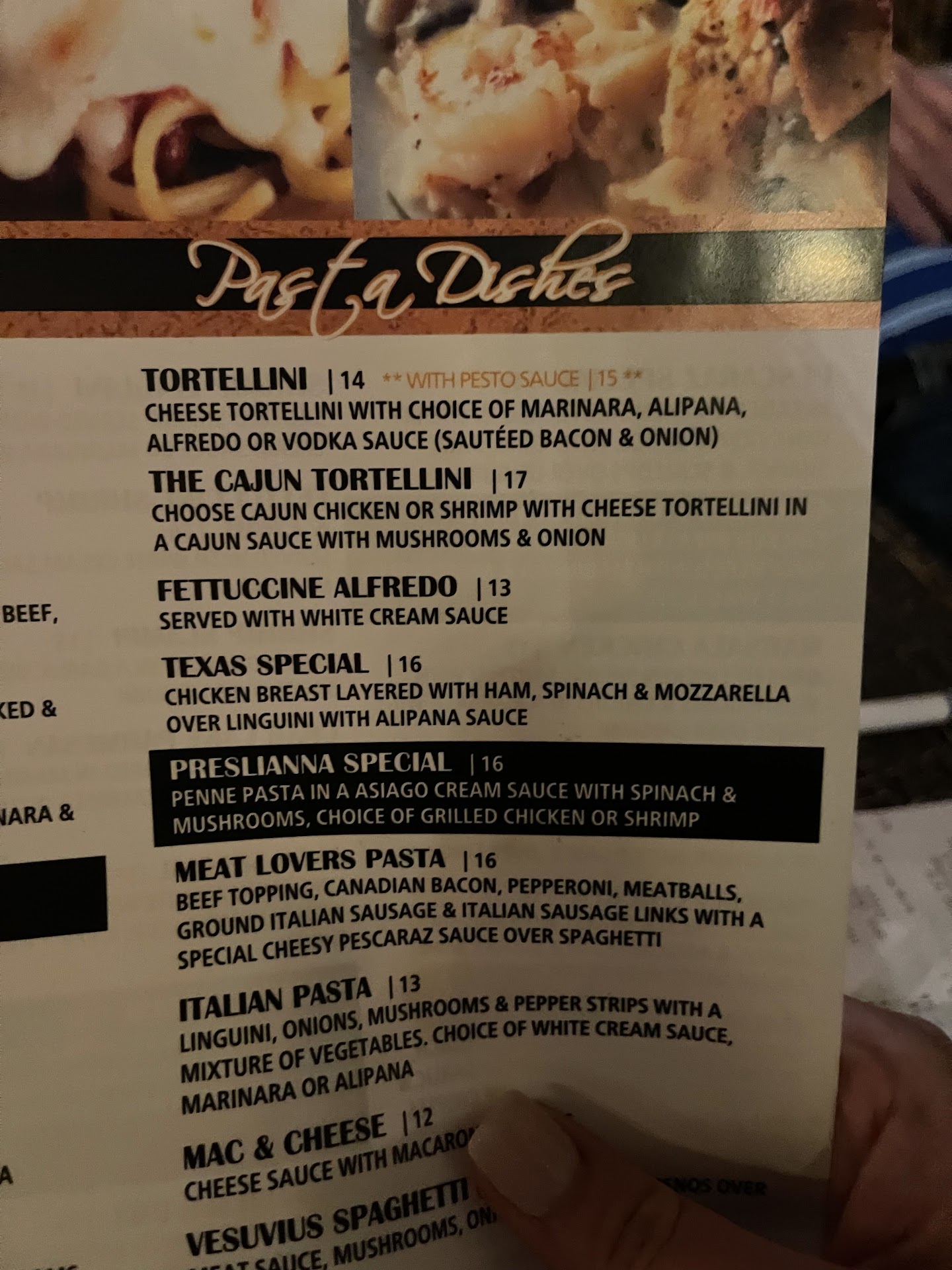Way overpriced for what we received and horrible experience overall. We waited over an hour to be seated, and when we were seated, the light above us was out so it was very dark at our table. We waited an additional 15 minutes for a server to even greet us. I ordered the fettuccine Alfredo which was 13 dollars WITHOUT chicken. My husband ordered the tortellini which showed 14 dollars and the server asked if he wanted chicken or beef as if it came with the meal. It took about 45 minutes to get our food and only half of our table got their food. It took another 10-15 minutes for the other half of the table to get their food. I was given half a chicken breast on my fettuccine Alfredo, which I did not ask for and the food tasted bland and mushy. When we received our ticket, I had to turn on my flashlight to read it and the meals each cost 5 dollars MORE than what was shown on the menu. We reviewed the menu again and did not see anywhere that it showed an additional charge for meat.
