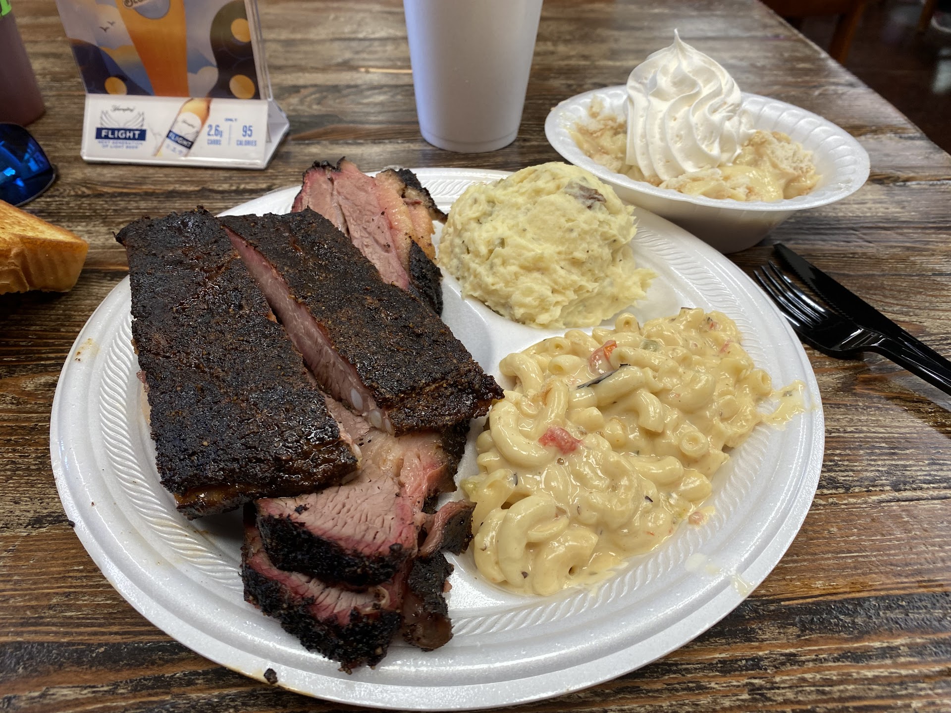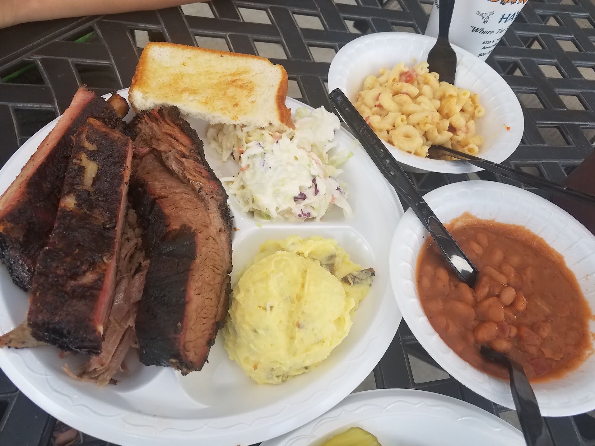 My husband gave the meat a 4.5. It was juicy and delicious. The sauces were good but the “spicy” was a bit too much for him. Loved the ribs and Briscuit for sure. Sausage was good too. He’d have come back. Too bad he was ready to eat because we did not even get a photo.