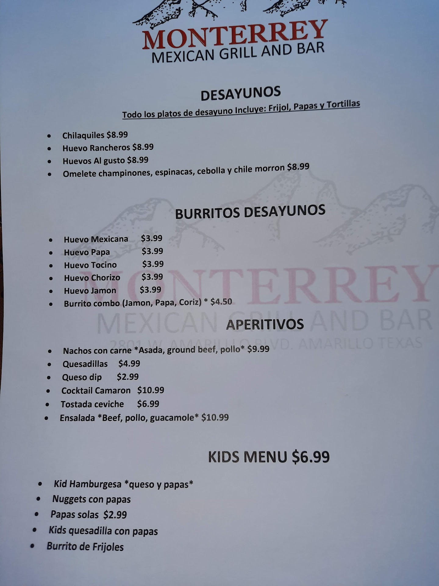 Found this restaurant by looking for a hamburger restaurant. The name sounds like a place where you can get a burger, and maybe a steak or some chicken tenders, but the reality is that although they do serve a really good, inexpensive,old fashioned burger here, this restaurant is, at its heart, a very authentic mexican restaurant. The menu includes menudo, chile relleno, pozole, gorditas, and other authentic dishes. My El Salvadorian father-in-law had the menudo and loved it. I just had a double cheeseburger because that's what I was craving when I walked in the door, and it was delicious, as were the crinkle cut fries that I got with it. Next time I'm in Amarillo, I will definitely go back. The only things that prevented a full 5 stars were that it smelled a little like cigarettes inside, and the parking...